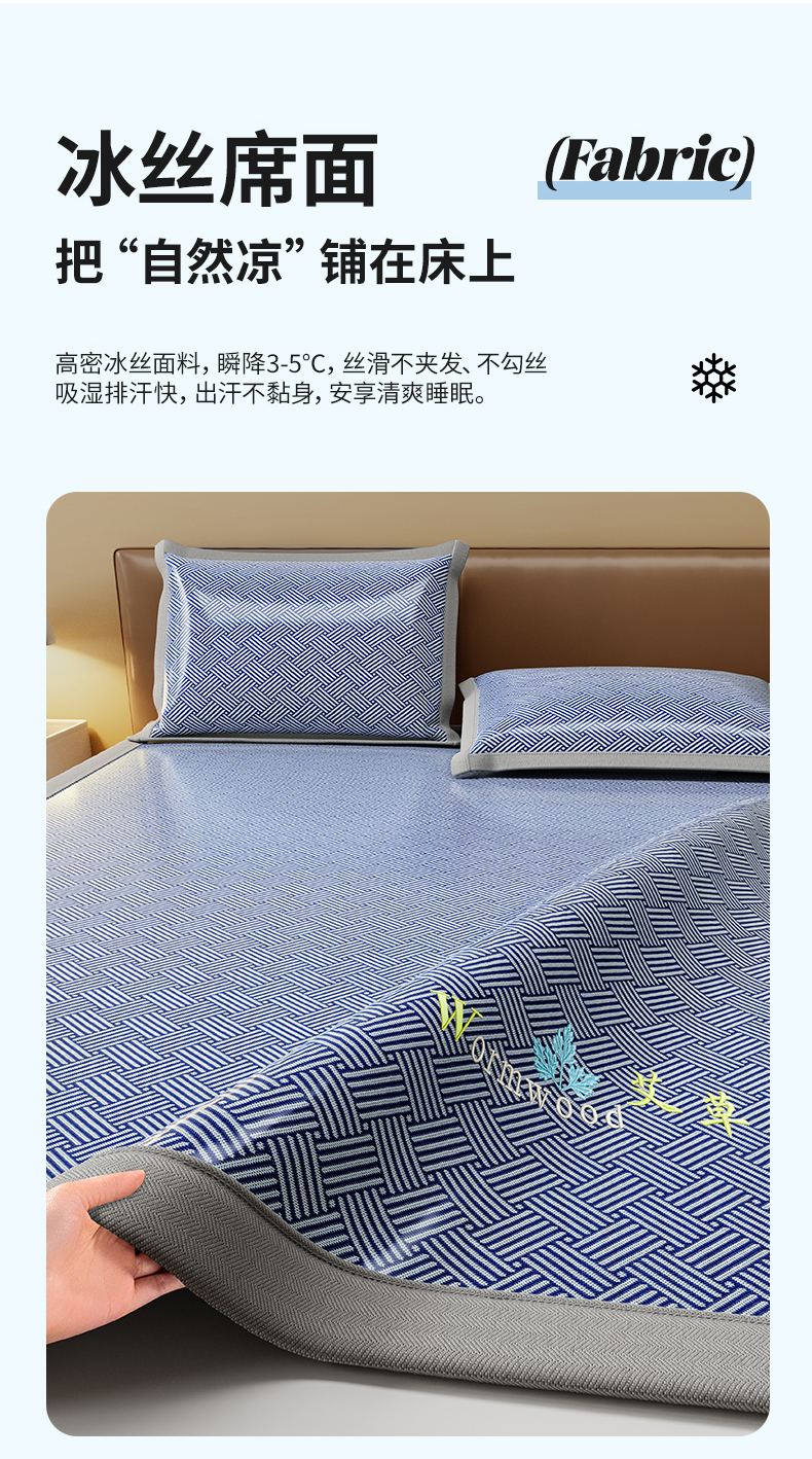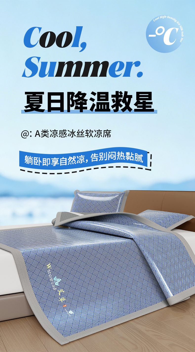 商品名称:(总)品乐家纺 2026新款夏日凉感高密冰丝软凉席席子