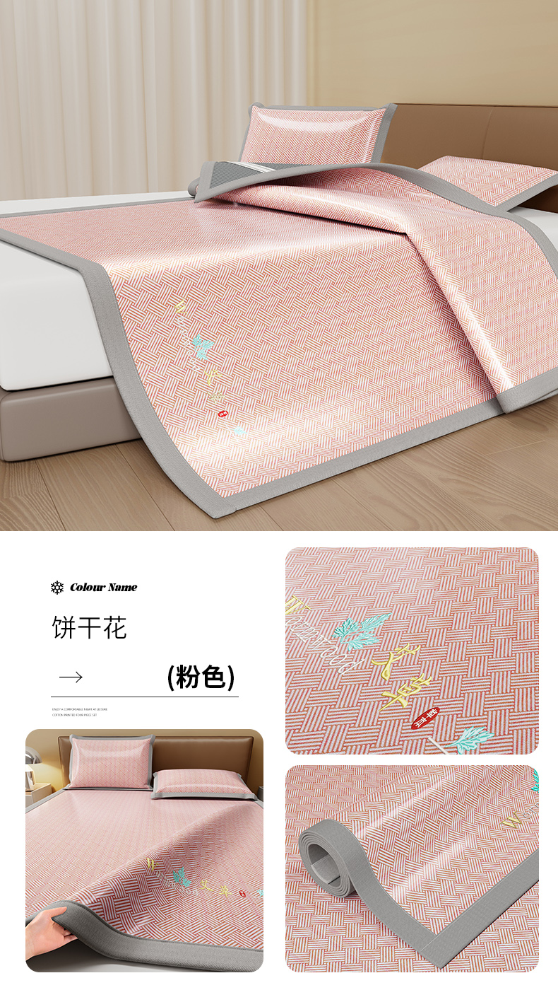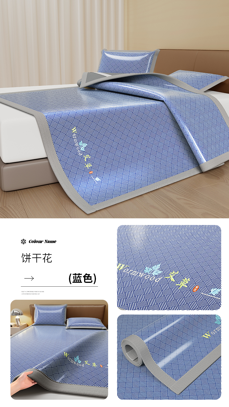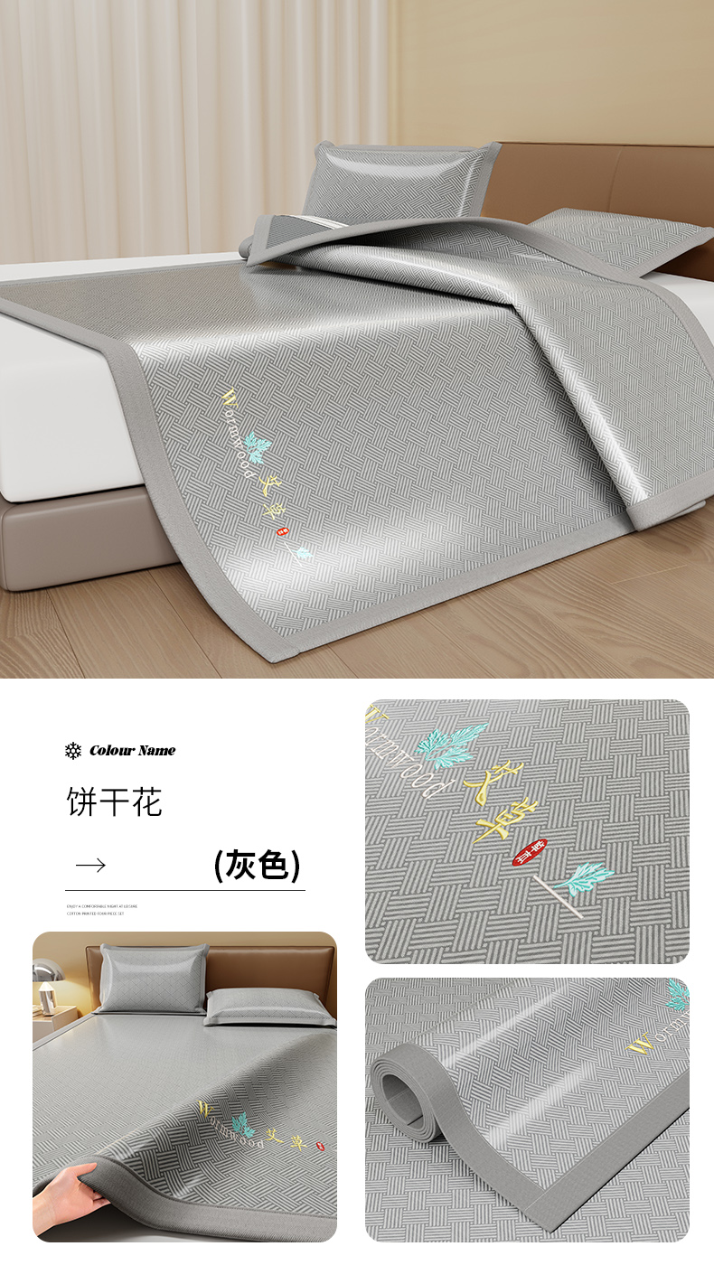 (总)品乐家纺 2026新款夏日凉感高密冰丝软凉席席子,饼干花粉色,饼干花咖色,饼干花蓝色,饼干花绿色,千鸟格灰色,千鸟格蓝色,清新小花灰色,饼干花灰色,清新小花蓝色,遇见冰薄灰色,遇见冰薄蓝色