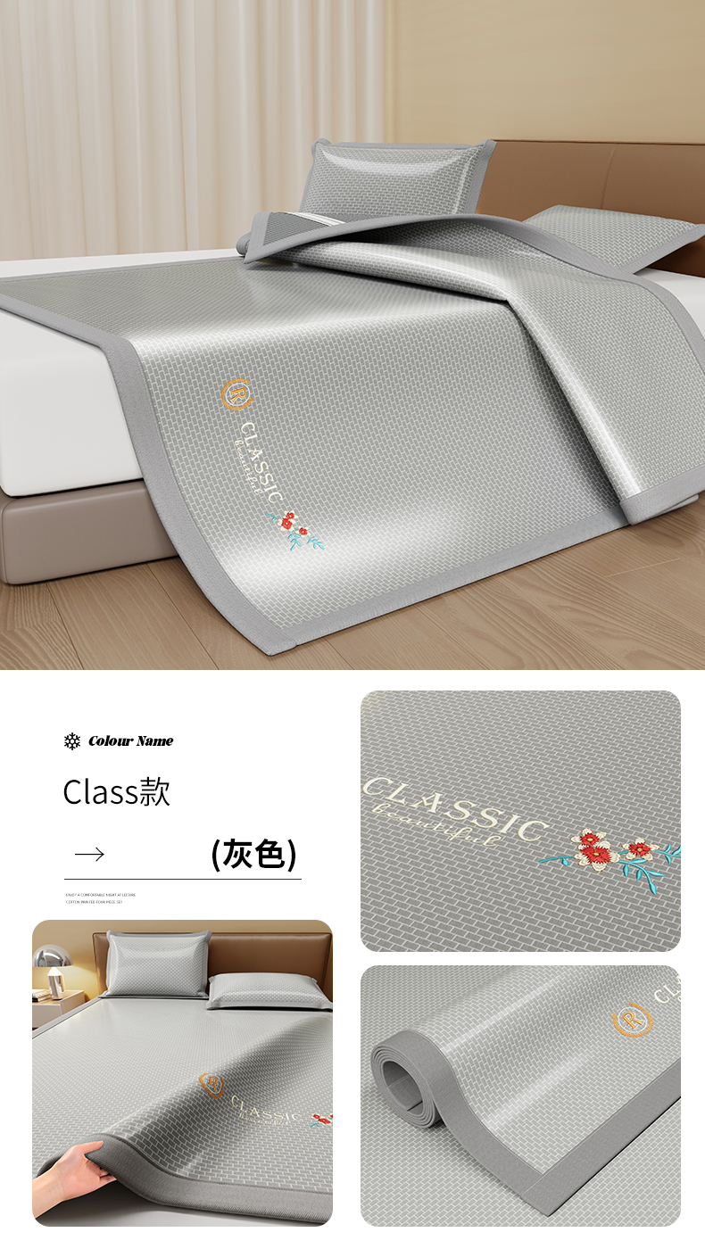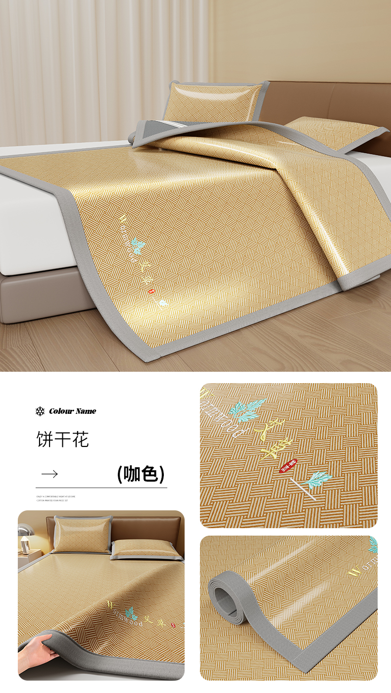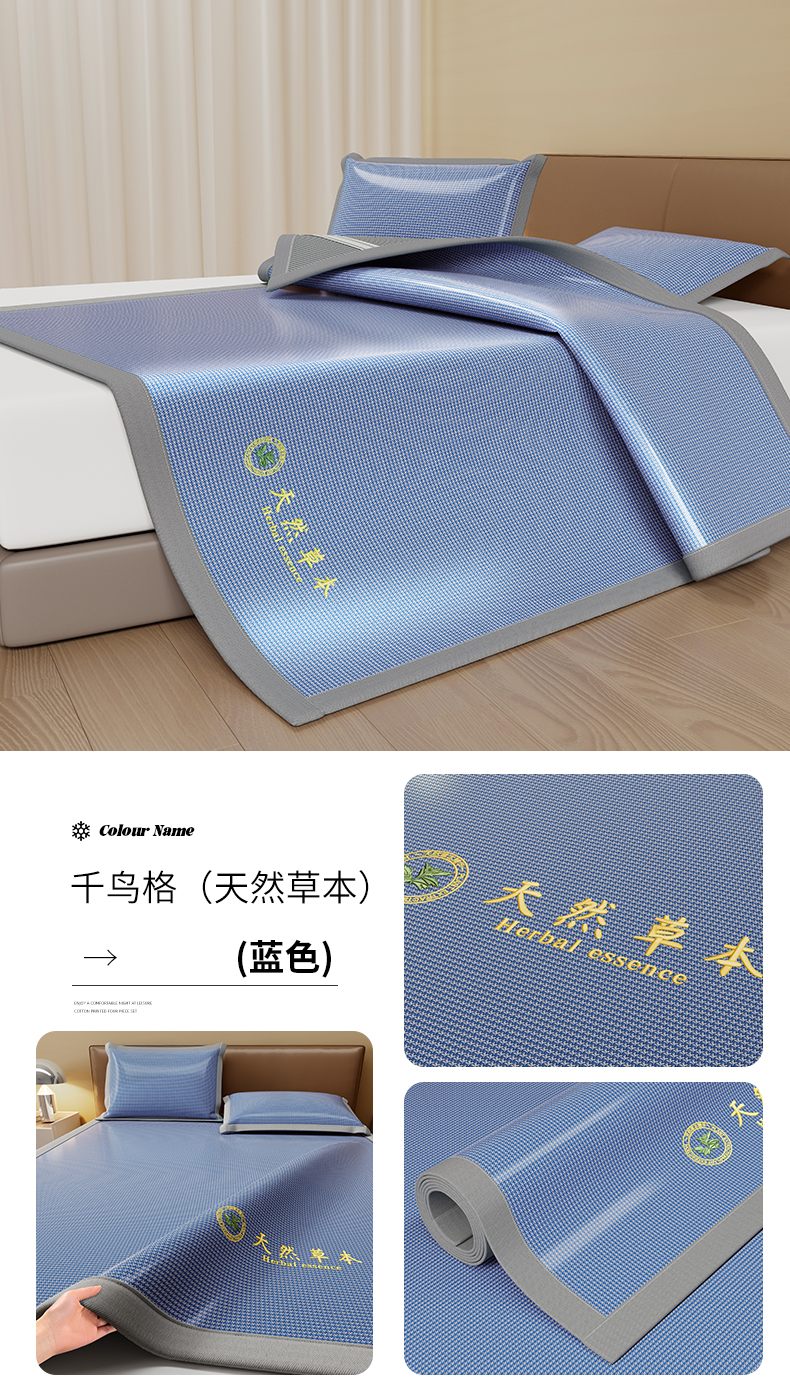 (总)品乐家纺 2026新款夏日凉感高密冰丝软凉席席子,饼干花粉色,饼干花咖色,饼干花蓝色,饼干花绿色,千鸟格灰色,千鸟格蓝色,清新小花灰色,饼干花灰色,清新小花蓝色,遇见冰薄灰色,遇见冰薄蓝色
