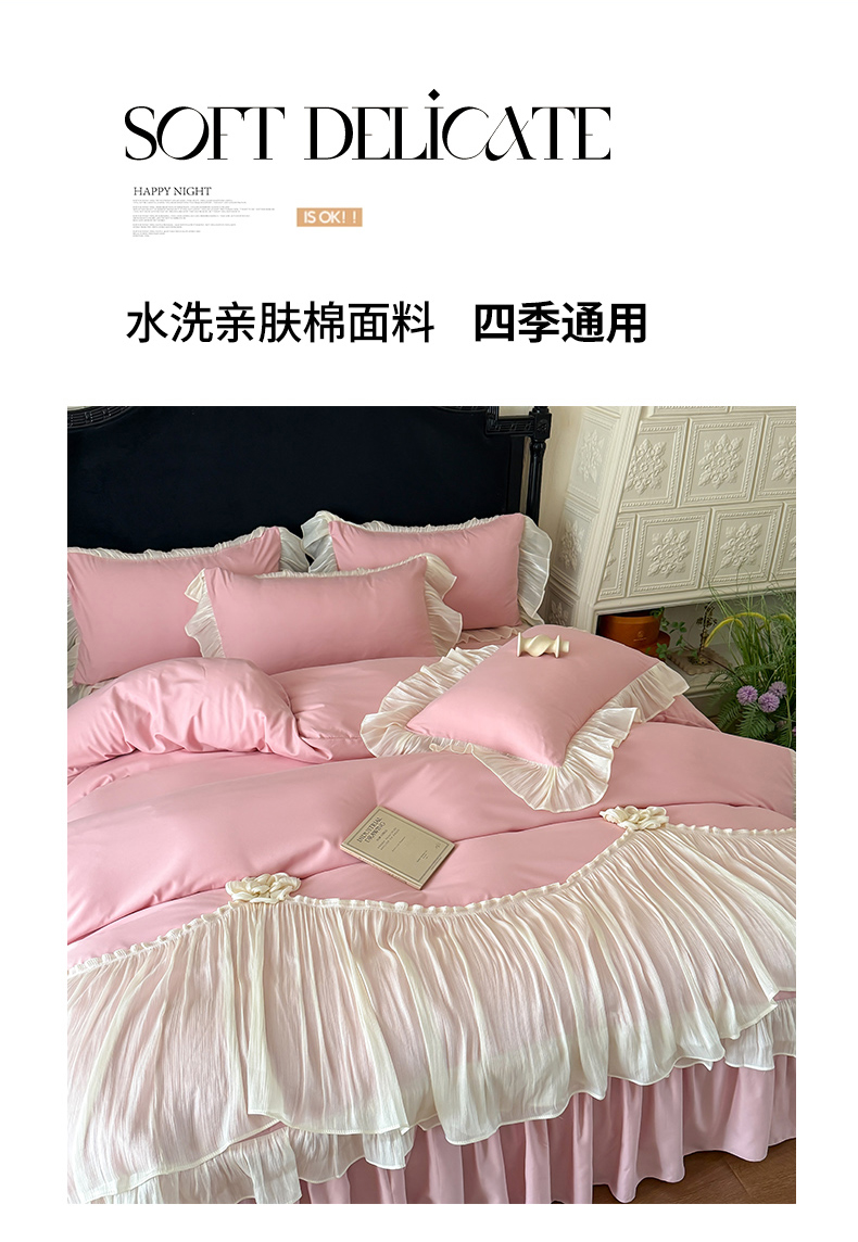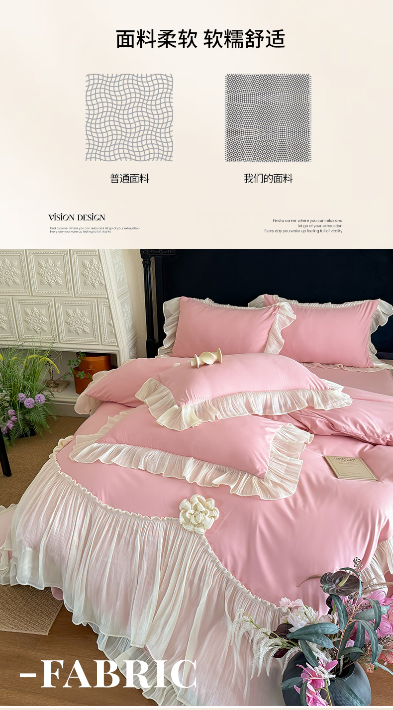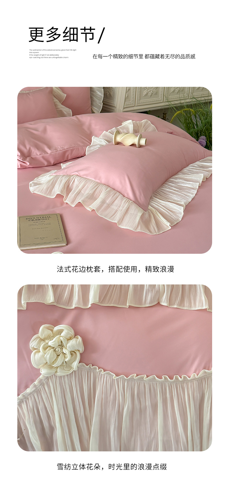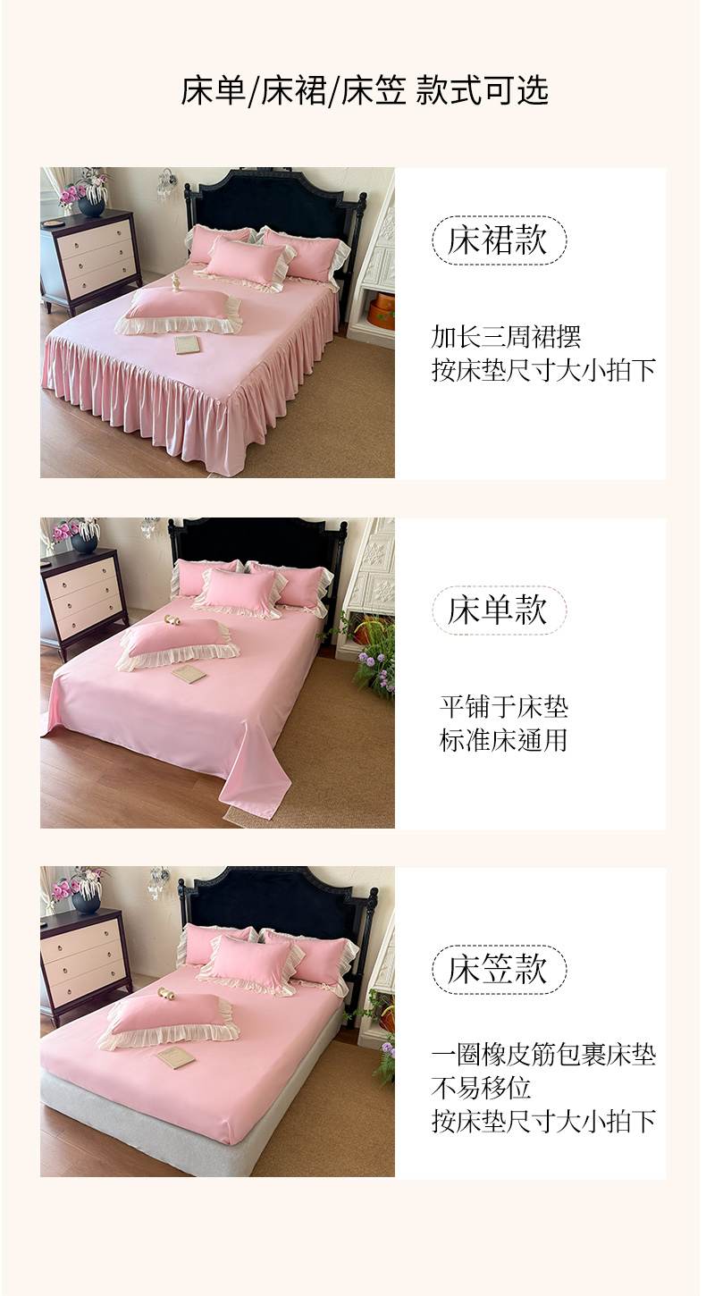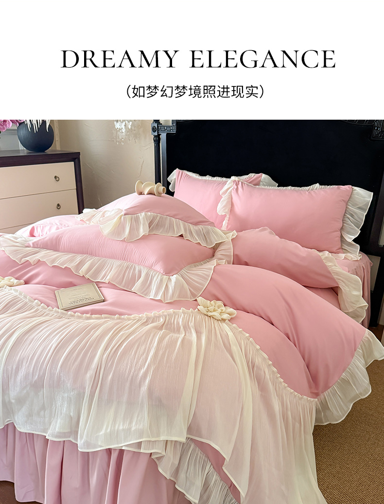 当前位置: 91家纺网 > 商品网购 > 床品套件 > 四件套 > 其它四件套 > 富盛家纺 2026新款水洗亲肤棉雪纺蕾丝法式床裙韩版四件套 自由女神—豆沙