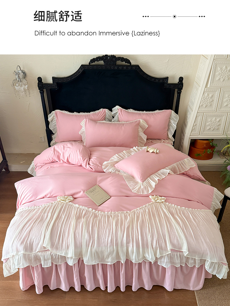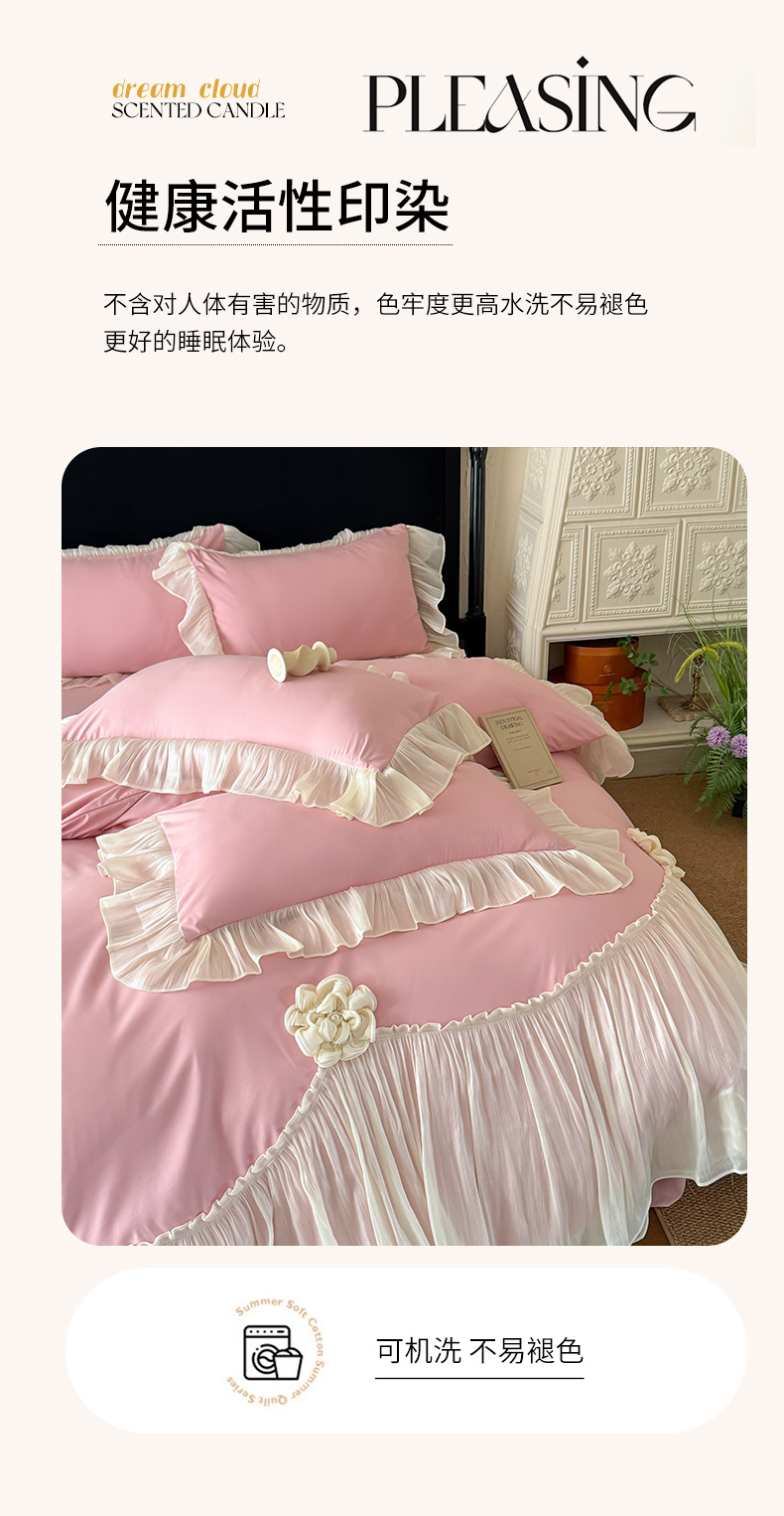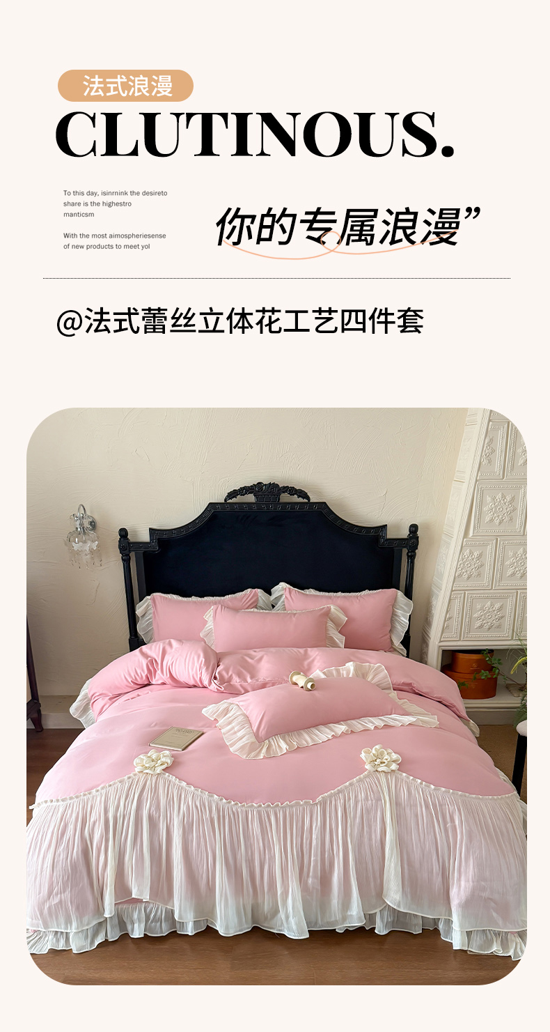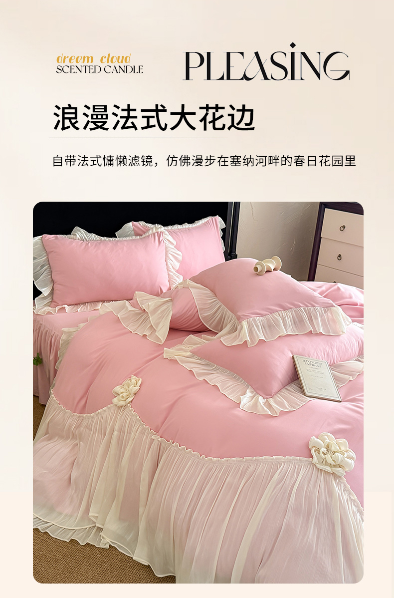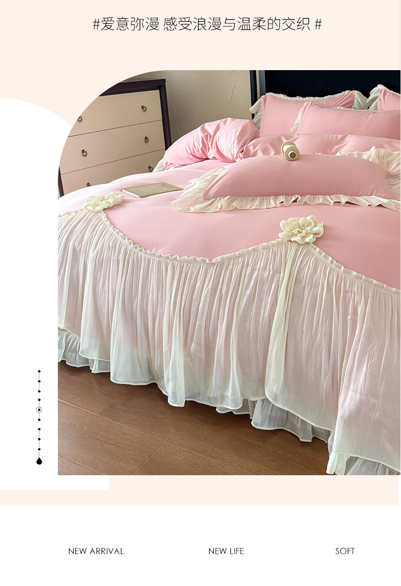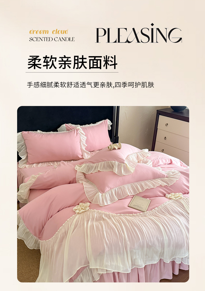 当前位置: 91家纺网 > 商品网购 > 床品套件 > 四件套 > 其它四件套 > 富盛家纺 2026新款水洗亲肤棉雪纺蕾丝法式床裙韩版四件套 自由女神—豆沙