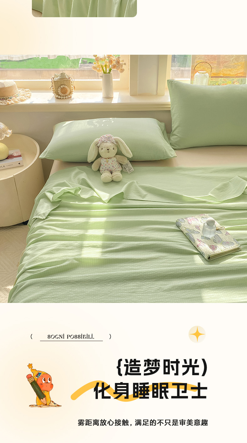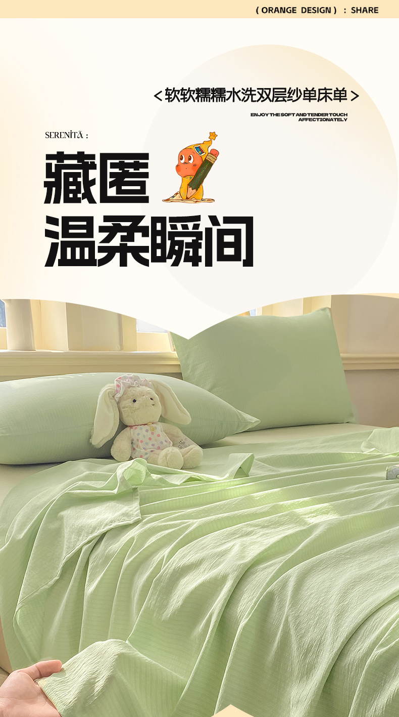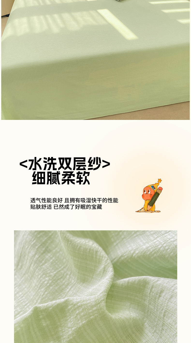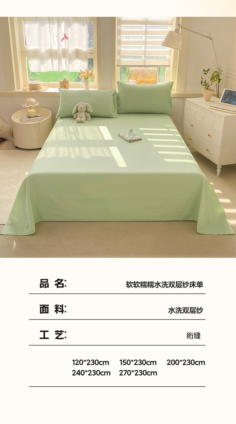 当前位置: 91家纺网 > 商品网购 > 床上用品 > 床单 > 晓时候 2026新款A类云感双层纱床单三件套单品单件床单 青竹绿