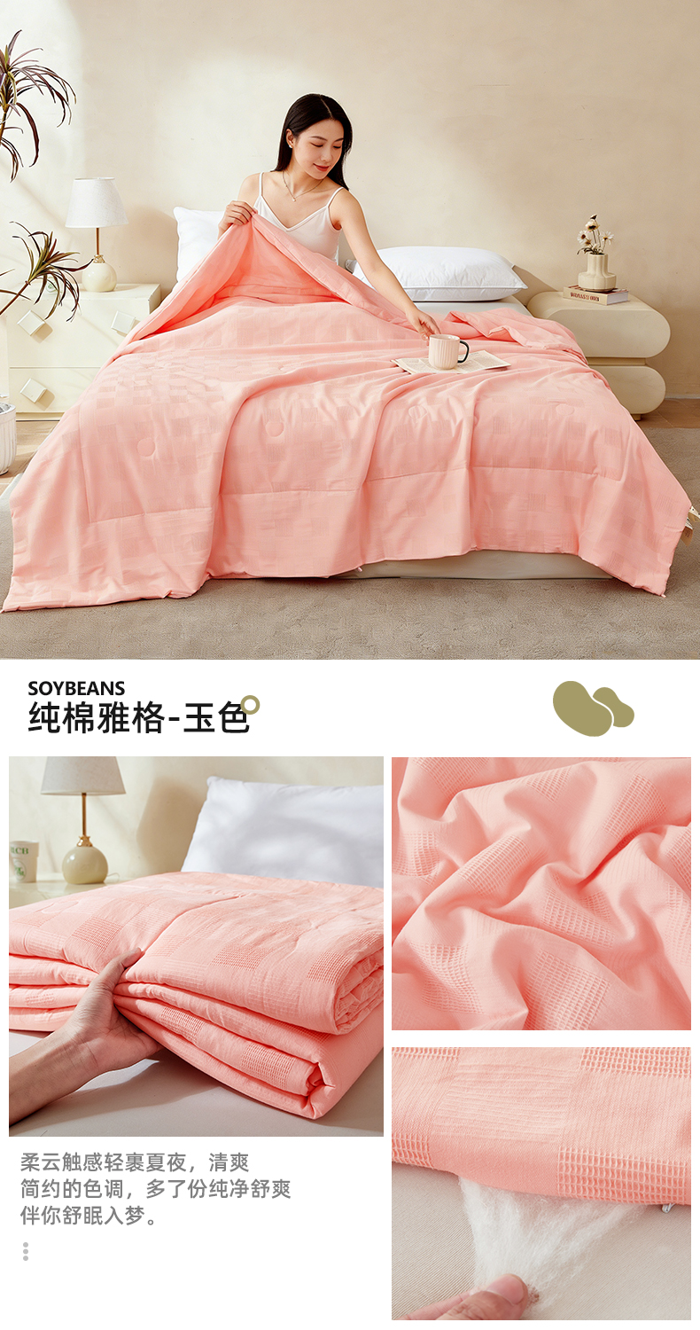 (总)阳光被业 2026新款100%纯棉大提花夏凉被大豆空调被 全棉春秋被学生棉被,米黄,奶白,浅草绿,浅灰,玉色