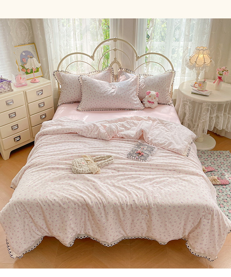 (总)康纳利 2026新款全棉花边夏被古法水洗云感棉空调被夏被四件套,奶黄樱漫,粉樱漫语,粉紫绮梦,花间浅梦,蕾丝粉语,蕾丝蓝韵,春芽浅漾,浅草花语,组合(仅参考)