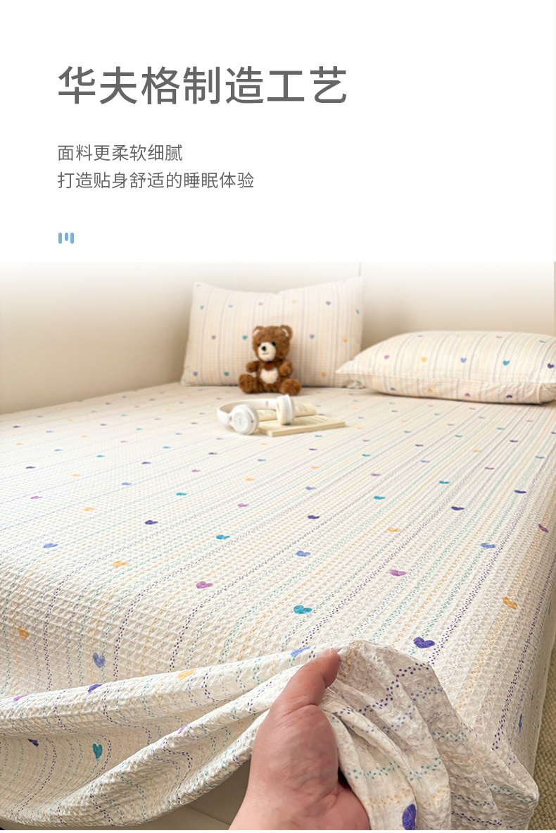 商品名称:居眠 2026新款全棉印花华夫格床单 彩带条