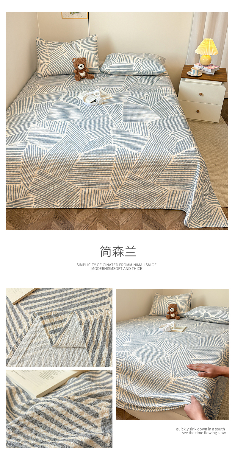 居眠 2026新款全棉印花华夫格床单 彩带条
