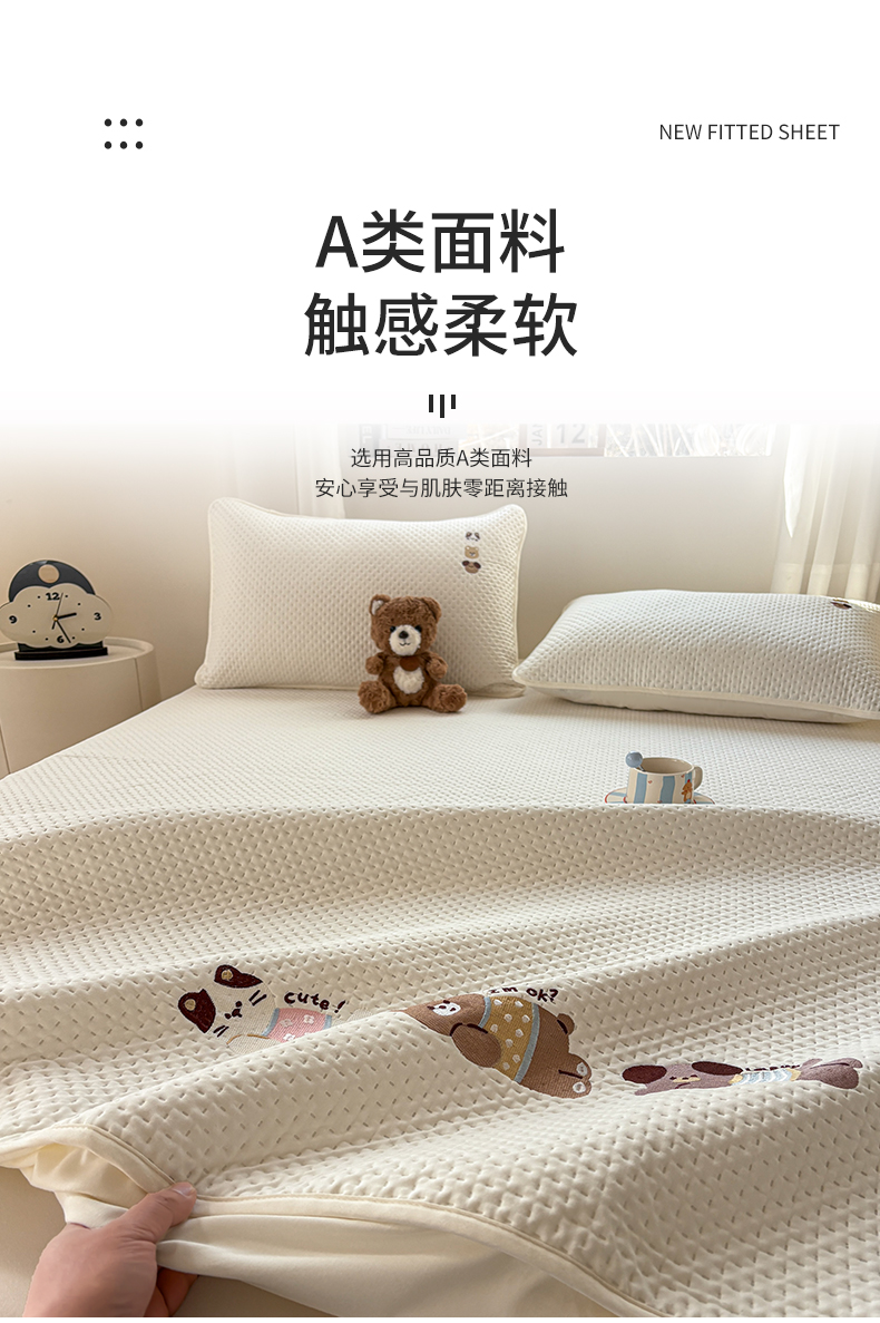 (总)居眠 2025新款A类母婴级卡通毛巾绣天丝床笠,假期小狗-天蓝,卡皮巴拉-水果绿,噗噗猫-肉粉,小树苗-奶昔白,小熊-姜黄