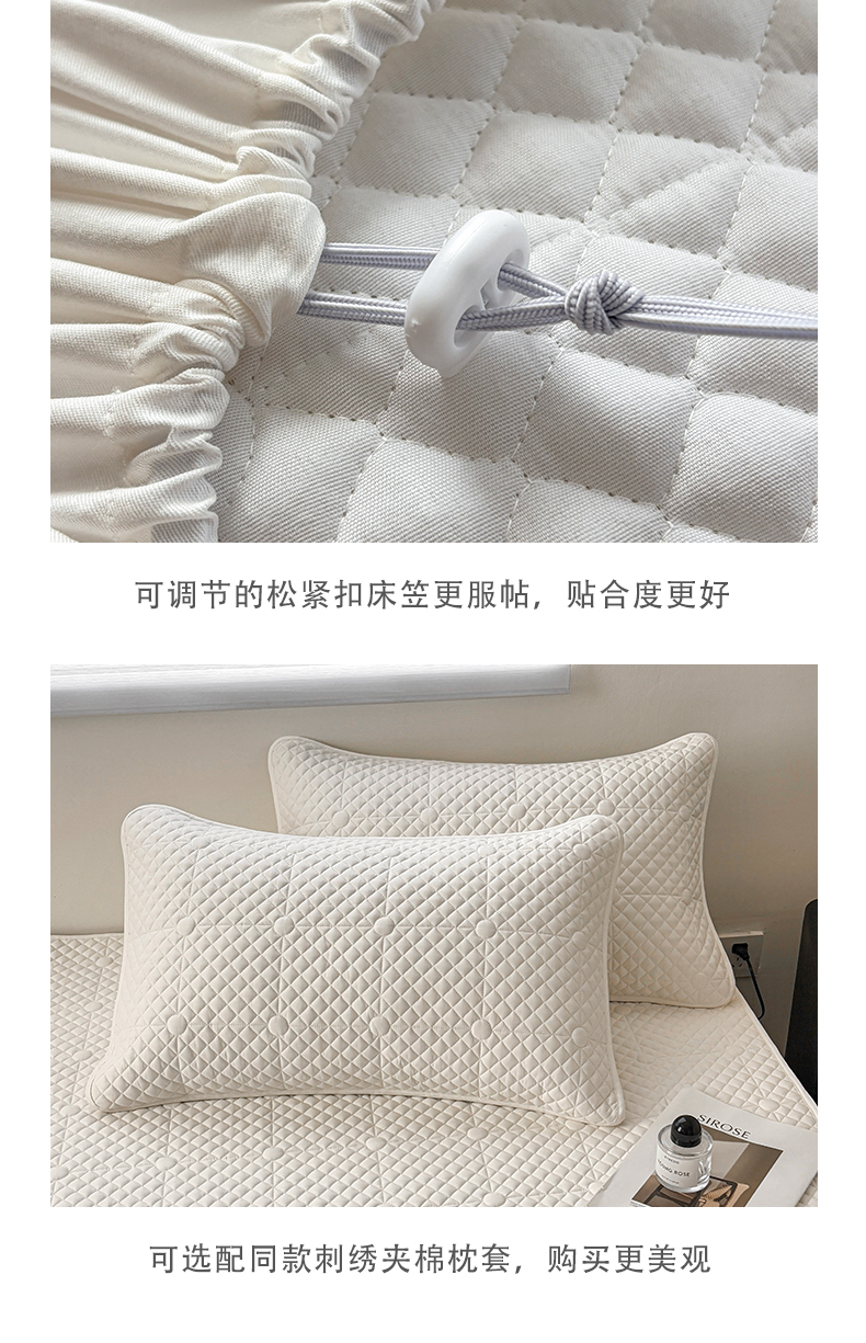 (总)居眠 2025新款防水夹棉床笠-清雅,清雅-粉色,清雅-灰色,清雅-卡其,清雅-绿色,清雅-米白,清雅-深蓝