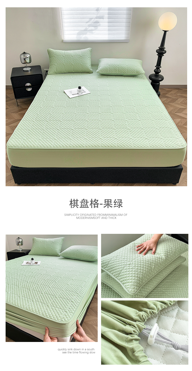 商品名称:居眠 2026新款全棉夹棉棋盘格床笠 棋盘格-果绿