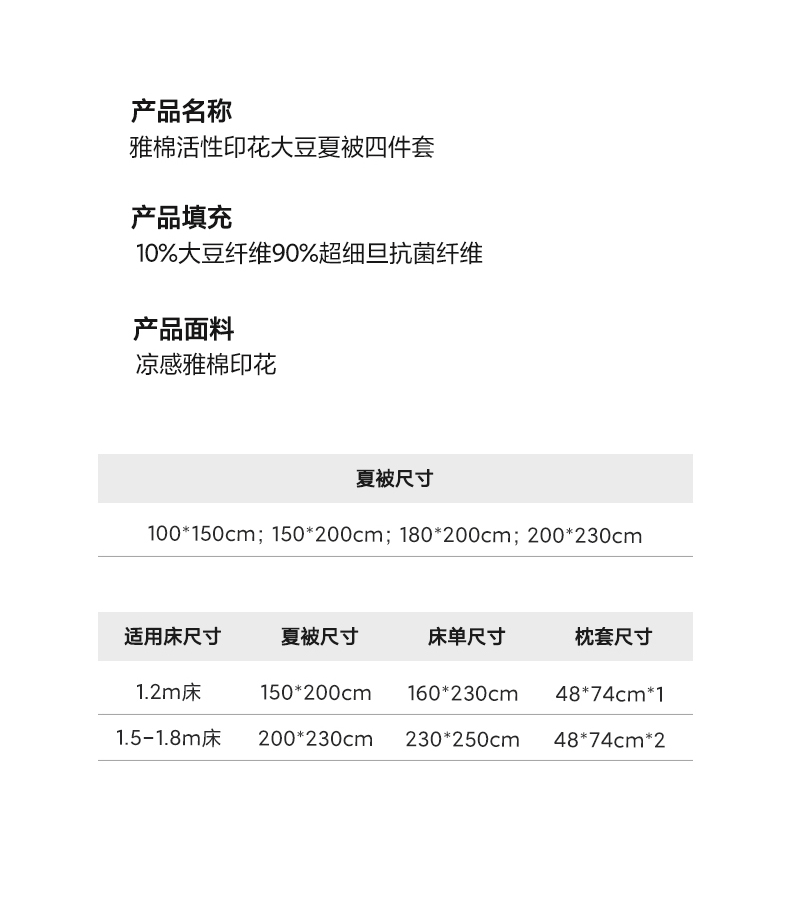 200x230cm单夏被+床单+枕套一对 | ¥72.00 |