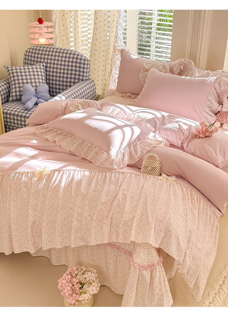 漫布云2026春夏新品韩版公主风小清新水洗棉床盖四件套针织棉双层纱纯棉棉麻全棉公主风床盖款四件套,花漾甜心-樱花粉,花漾甜心-嫩芽绿,花漾甜心-柠檬黄 ,花漾甜心-香芋紫, 花漾甜心-梦幻蓝