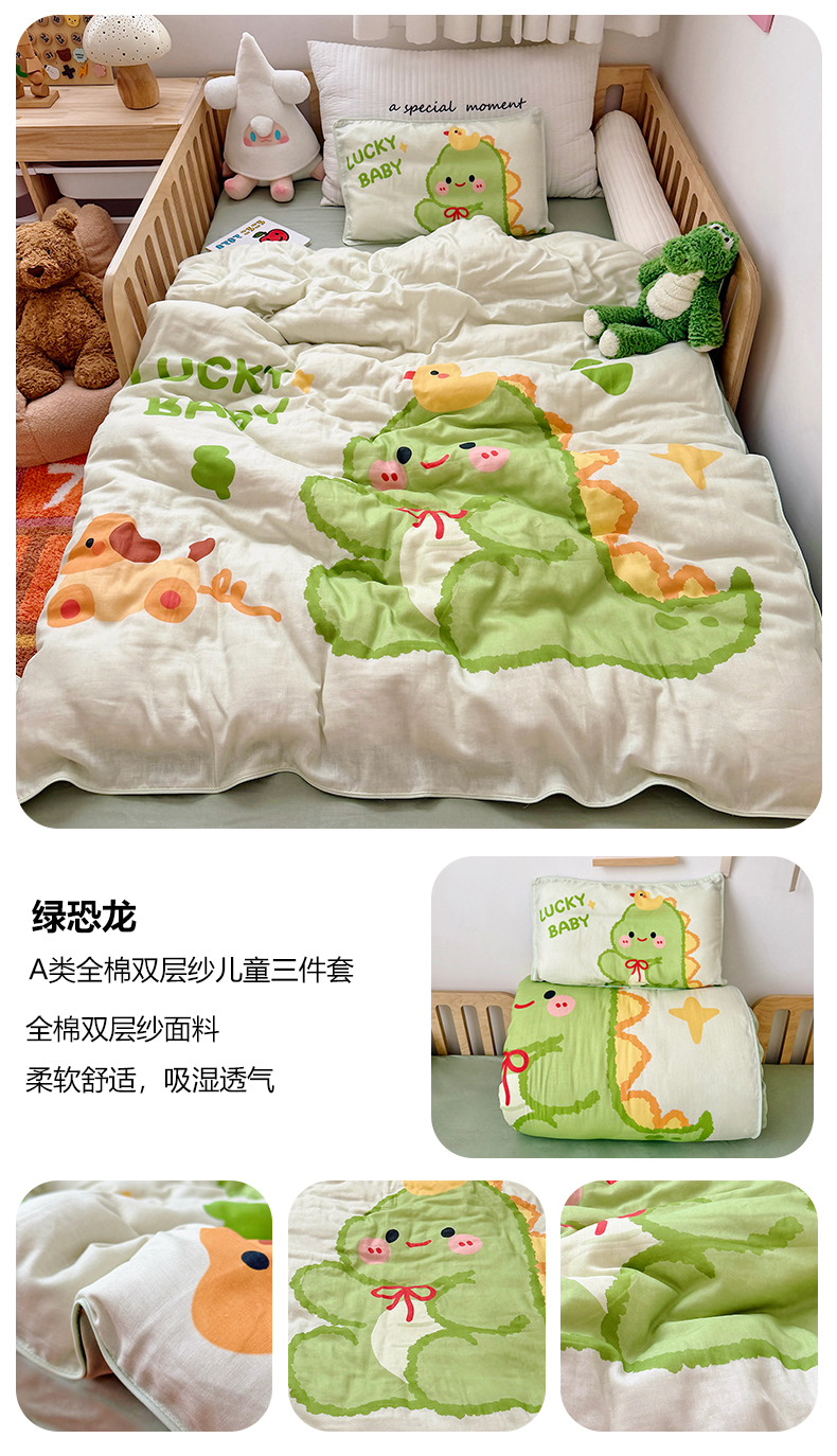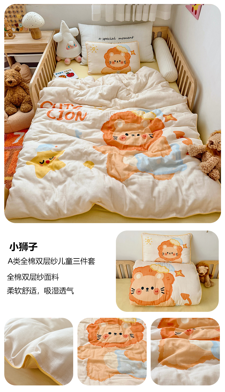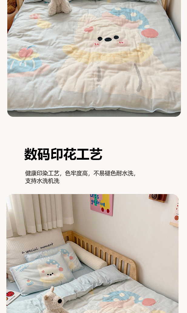 当前位置: 91家纺网 > 商品网购 > 床品套件 > 三件套 > 萌宝家纺 2026新款母婴A类全棉双层纱儿童被套纯棉纱布三件套 小海豹