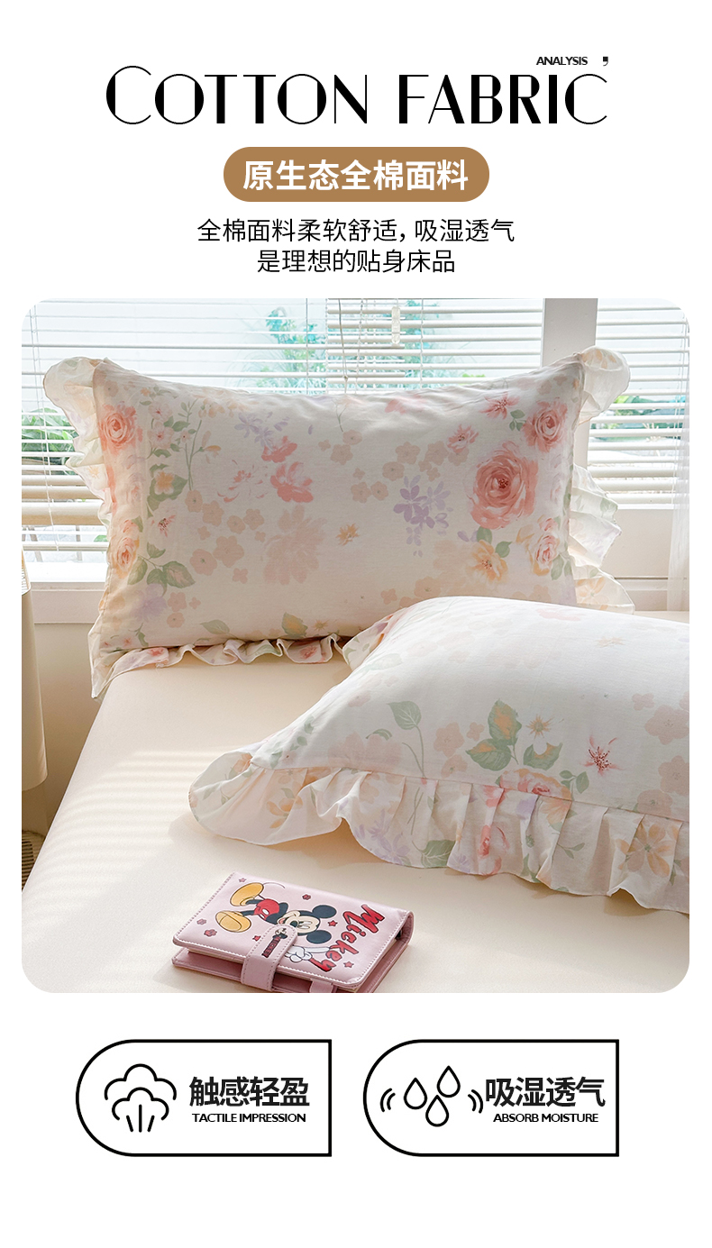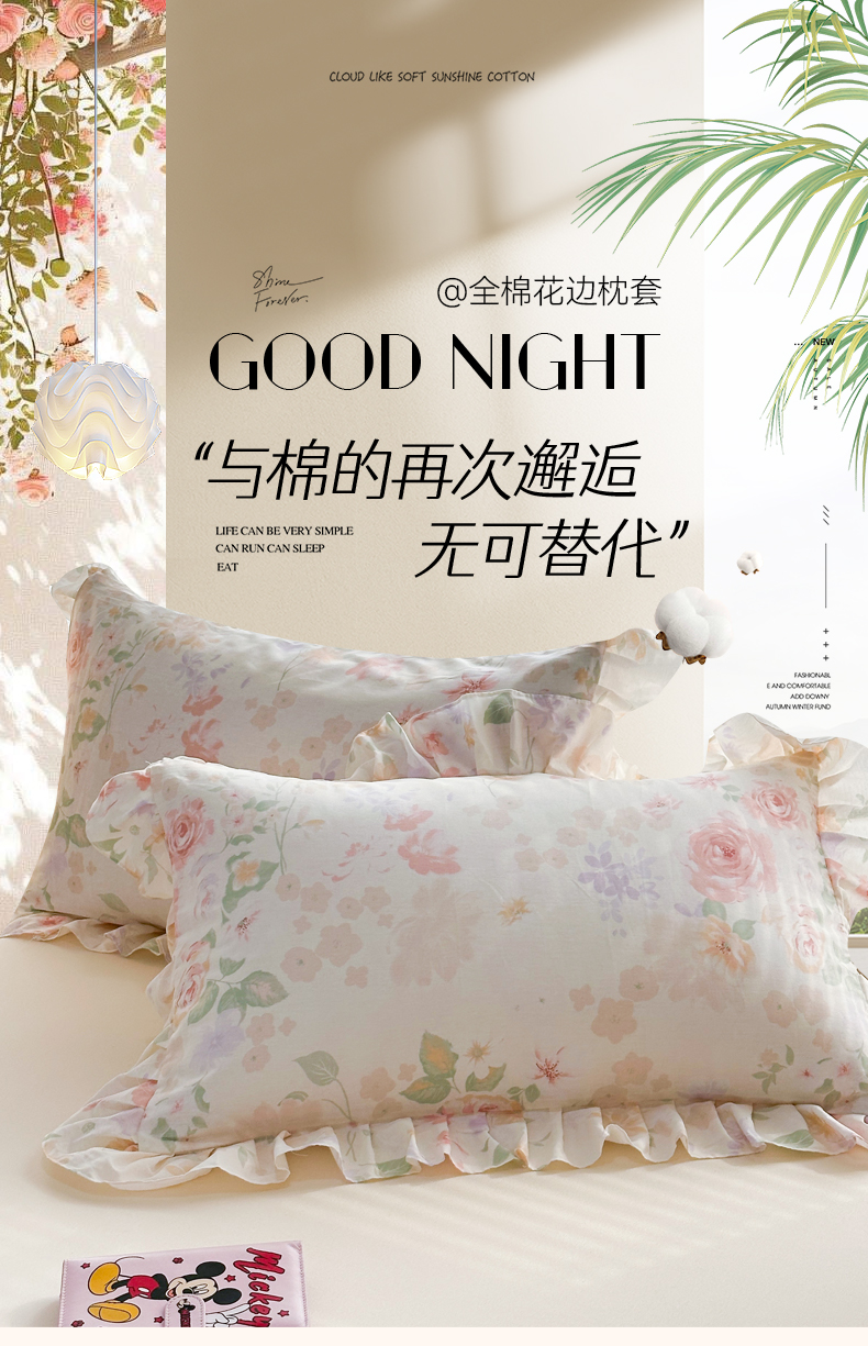 忘忧草 2026新款全棉纯棉印花精致花边枕套单枕套 枕套单件 雾飞花