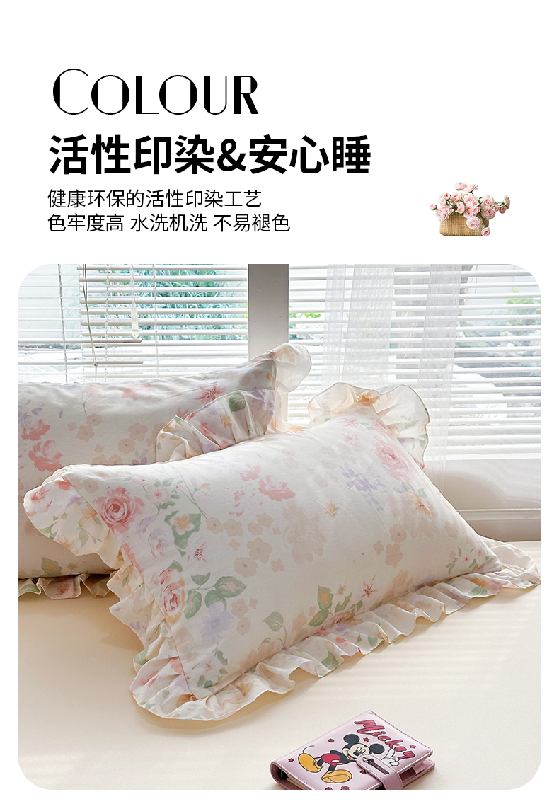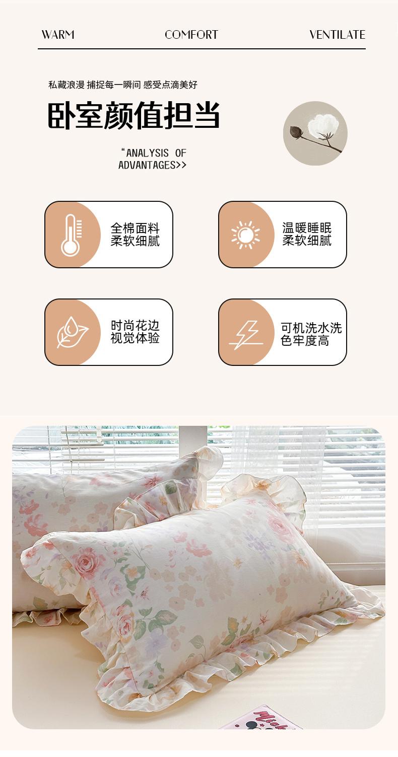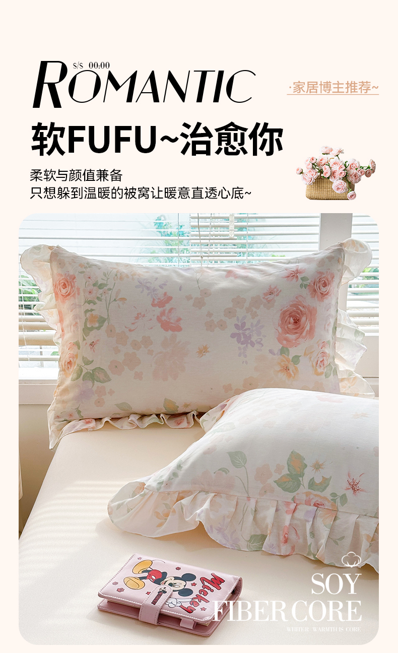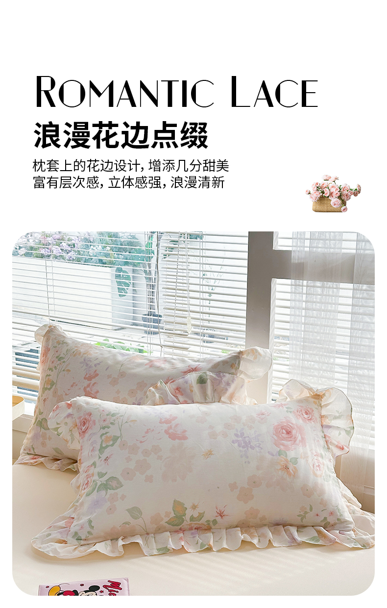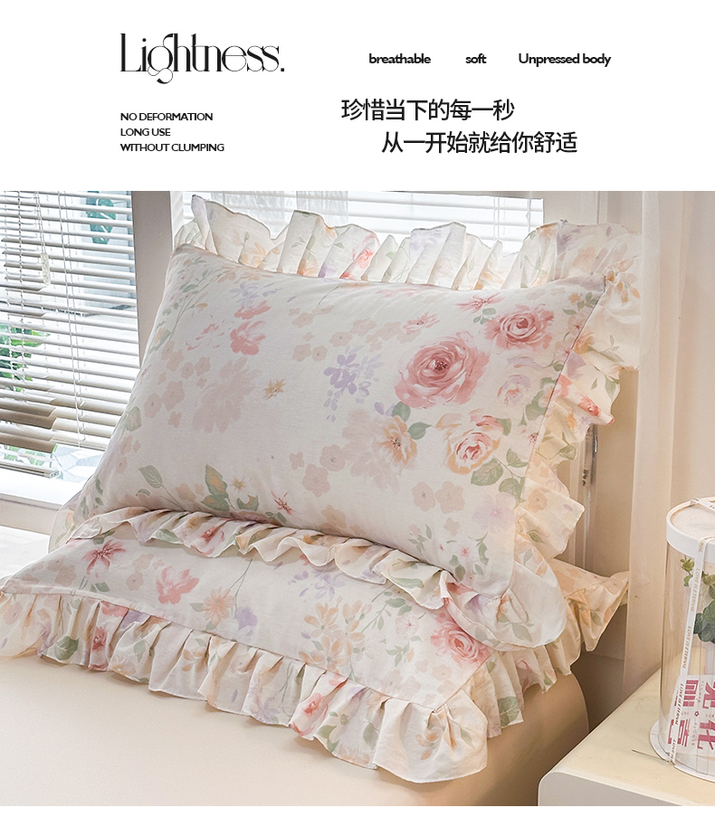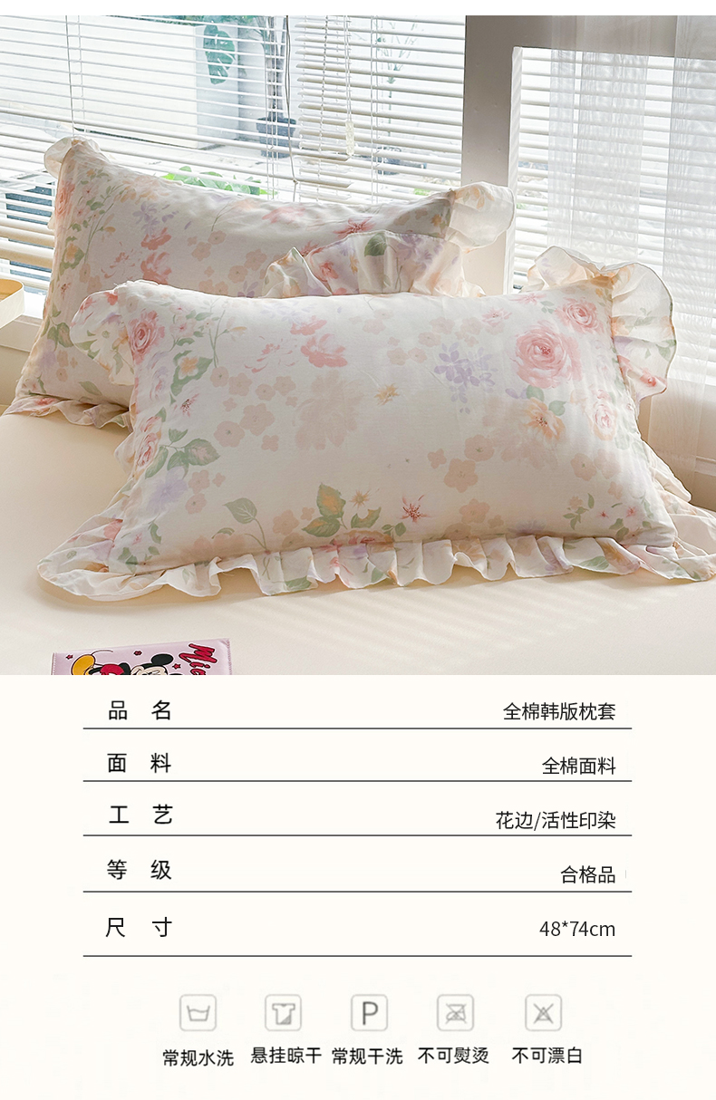 商品名称:忘忧草 2026新款全棉纯棉印花精致花边枕套单枕套 枕套单件 雾飞花
