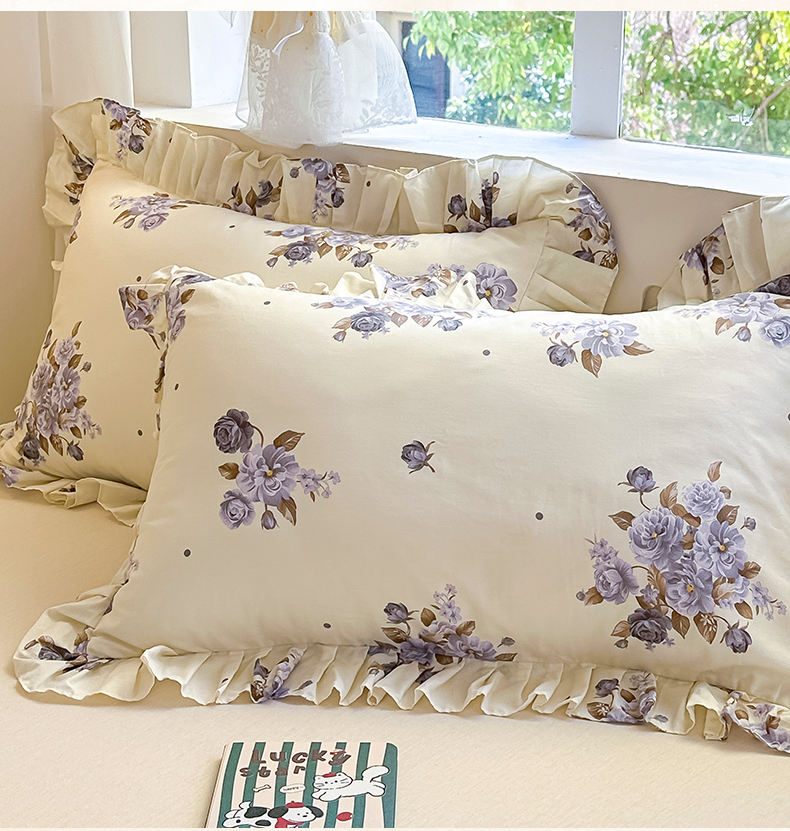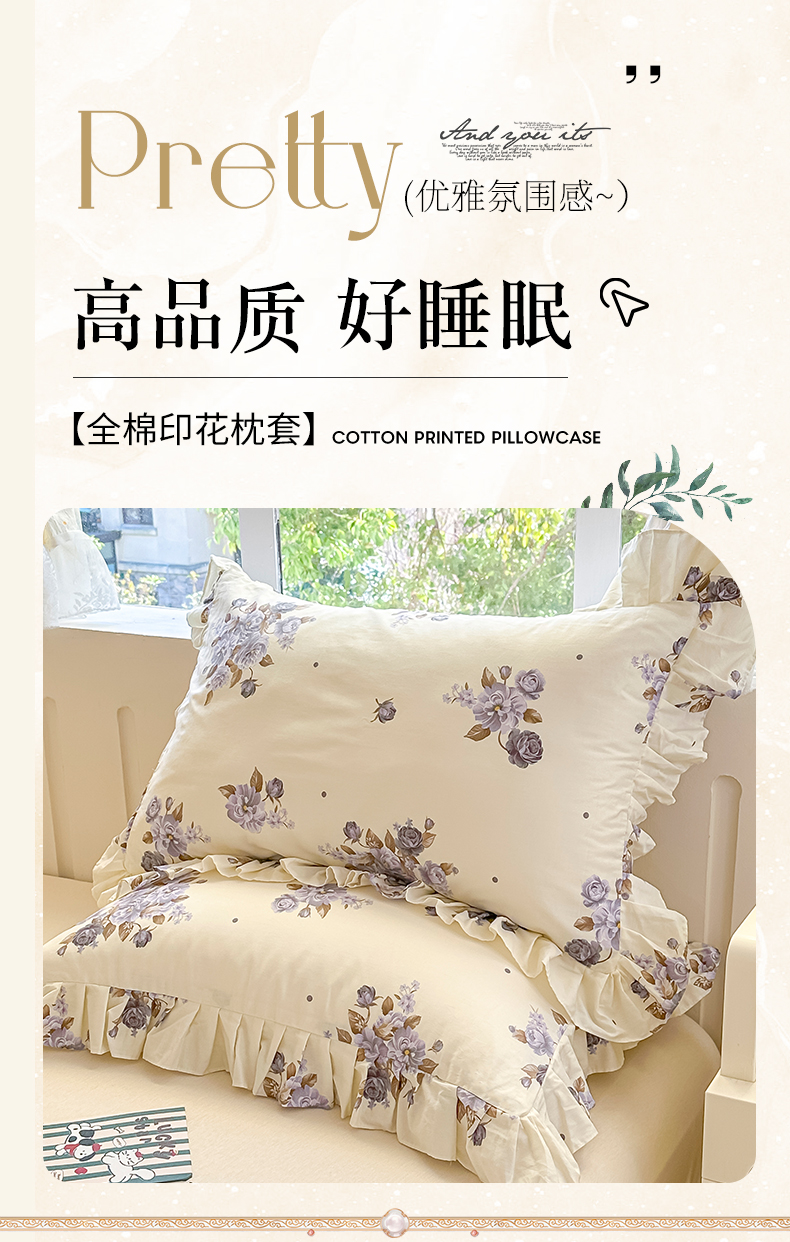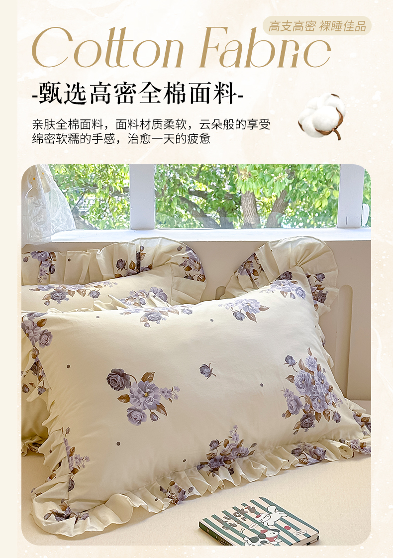 忘忧草 2026新款全棉纯棉印花精致花边枕套单枕套 枕套单件 婷锦