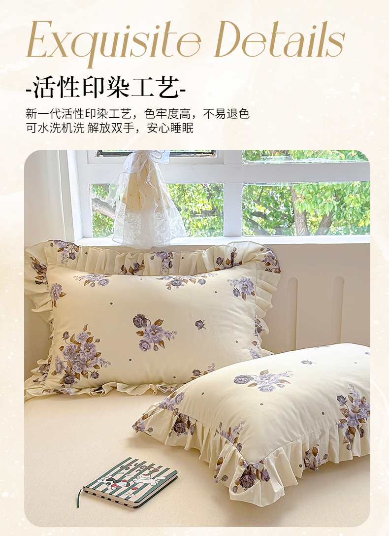 商品名称:忘忧草 2026新款全棉纯棉印花精致花边枕套单枕套 枕套单件 婷锦