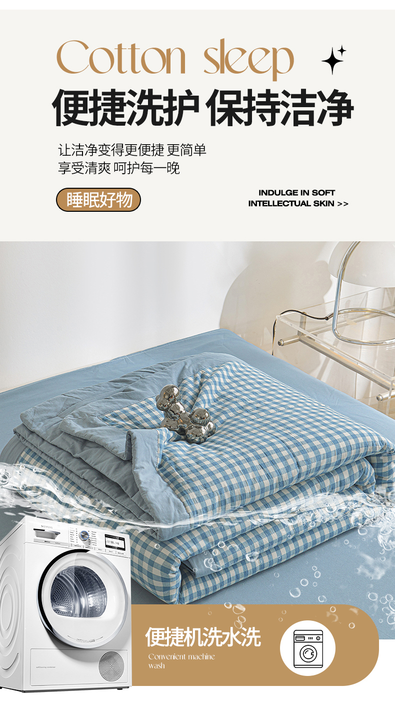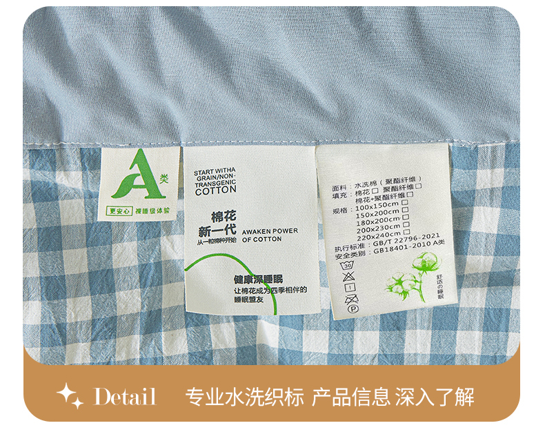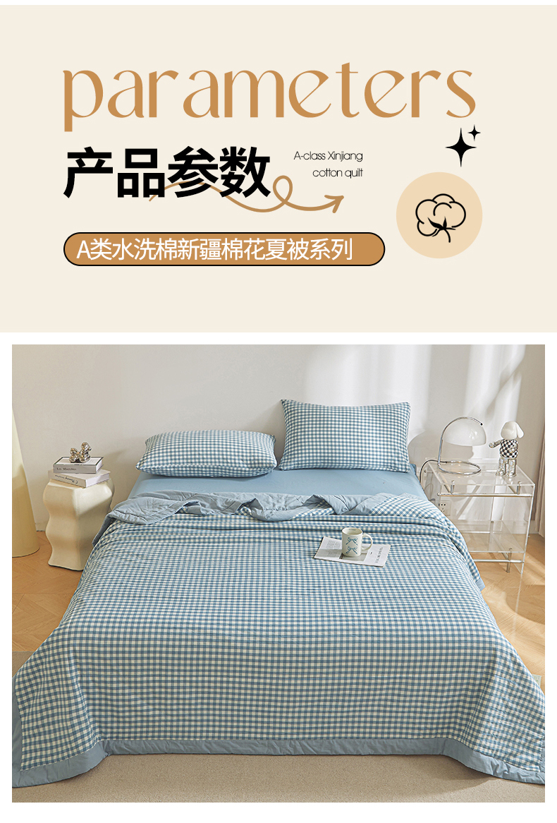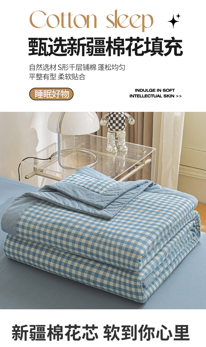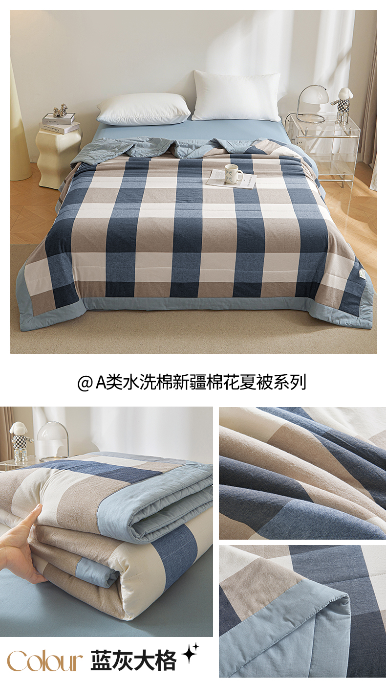 • 91家纺网 家纺一手货源 找家纺 鑫佰利 2026新款A类水洗棉新疆棉花夏被夏凉被空调被 蓝小格