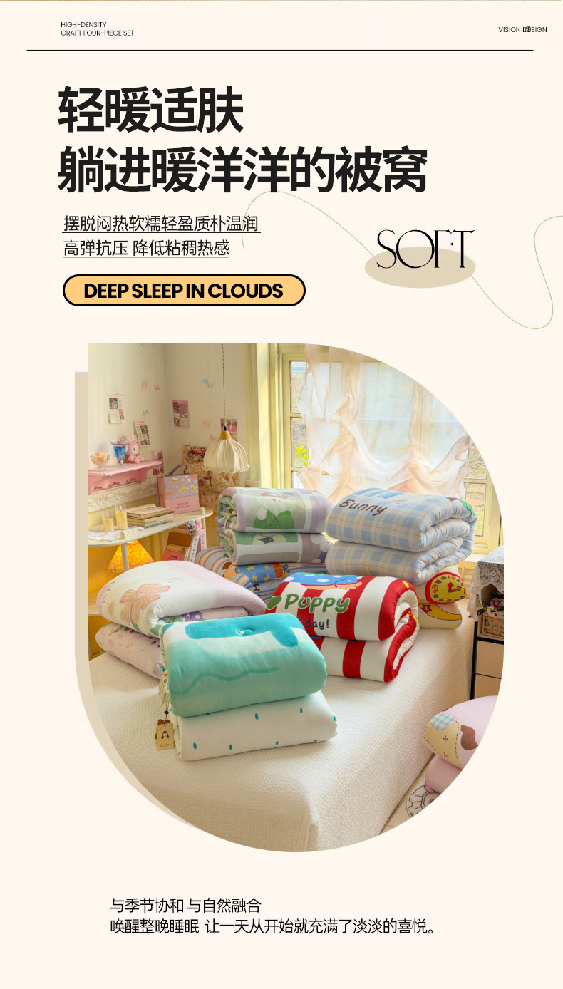 (总)宜家坊 2026新款A类针织棉嘟嘟被夏被春秋被空调被儿童学生被子被芯,奶黄星星,艾利小象,粉粉豹纹猫,花枝兔,简笔画,马鲨拉帝,喵喵屋,小公举,小汽车,星星豹纹咖,组合图