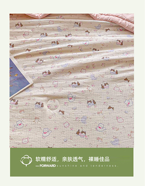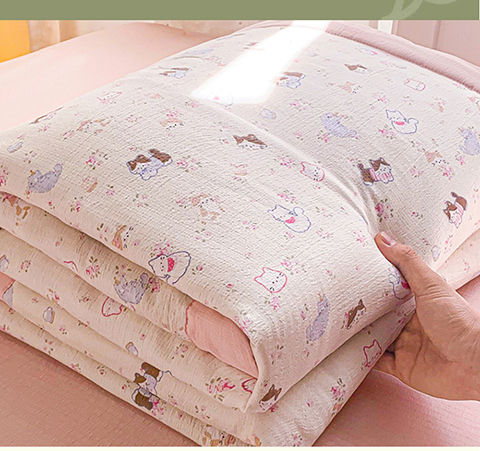 爱屋及屋 2026新款小清新双层纱宽包边棉花被夏凉被空调被夏被 萌宠集