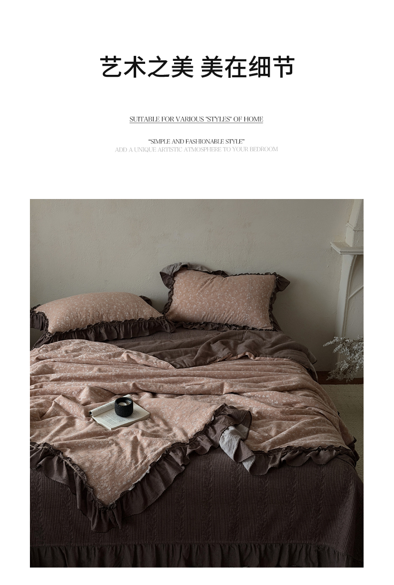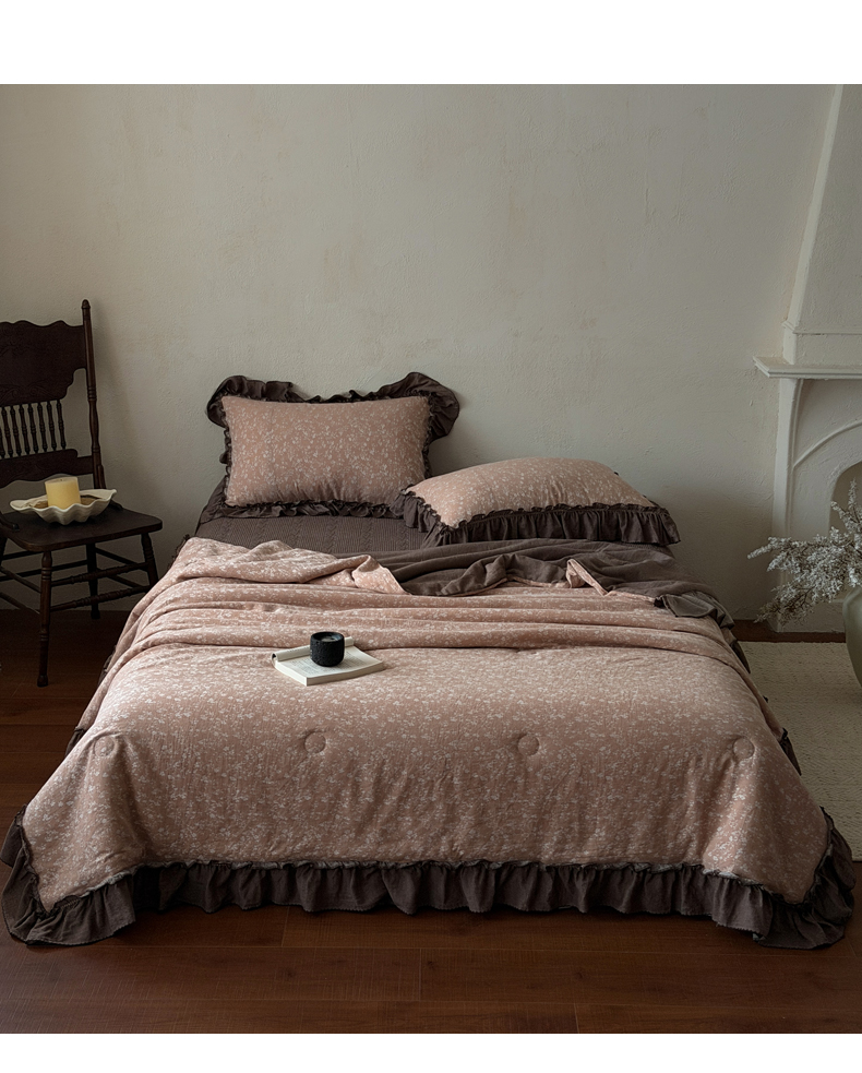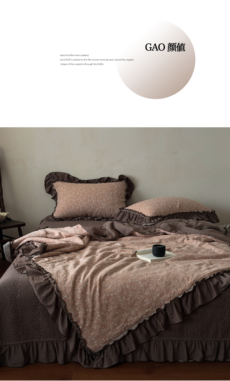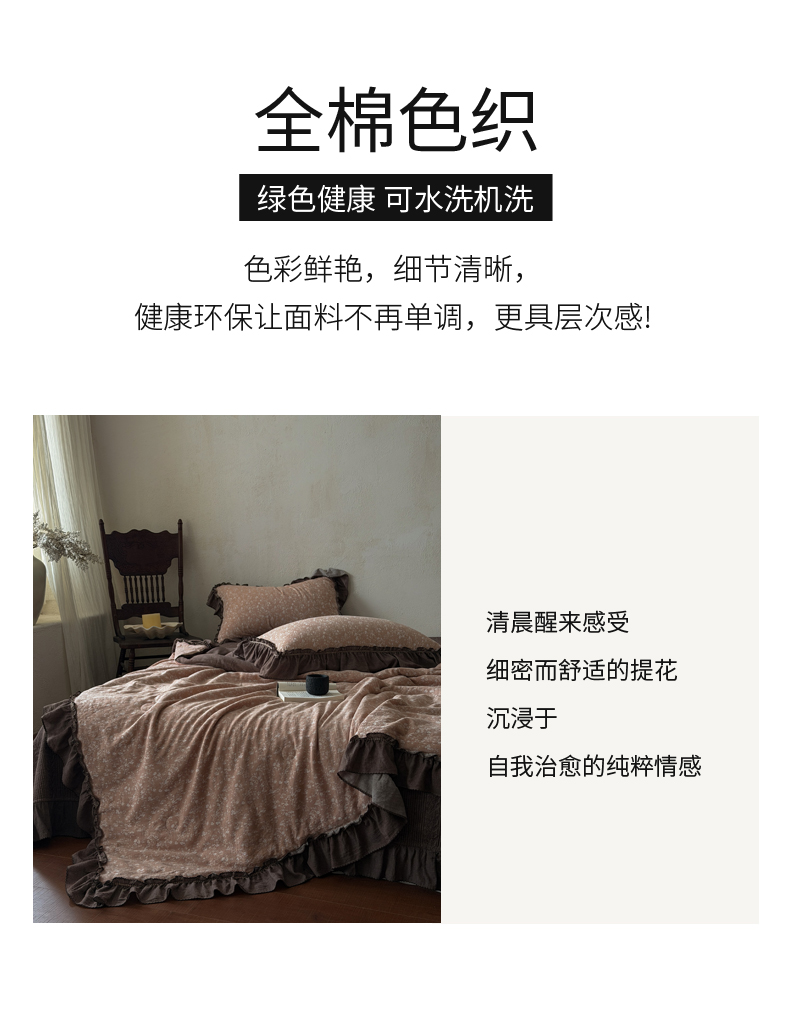 (总)米菲 2025新款全棉双层纱花边被被子被芯,初春,简约格调,南枝