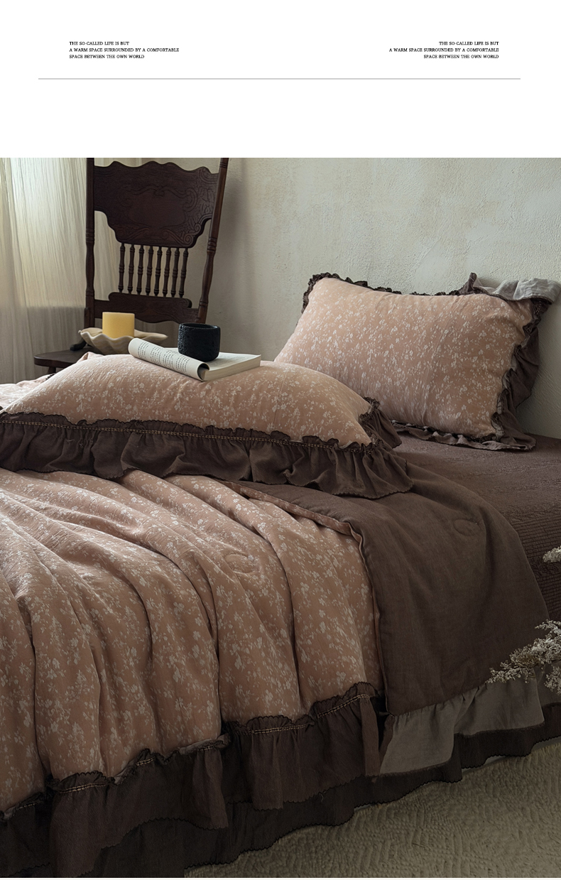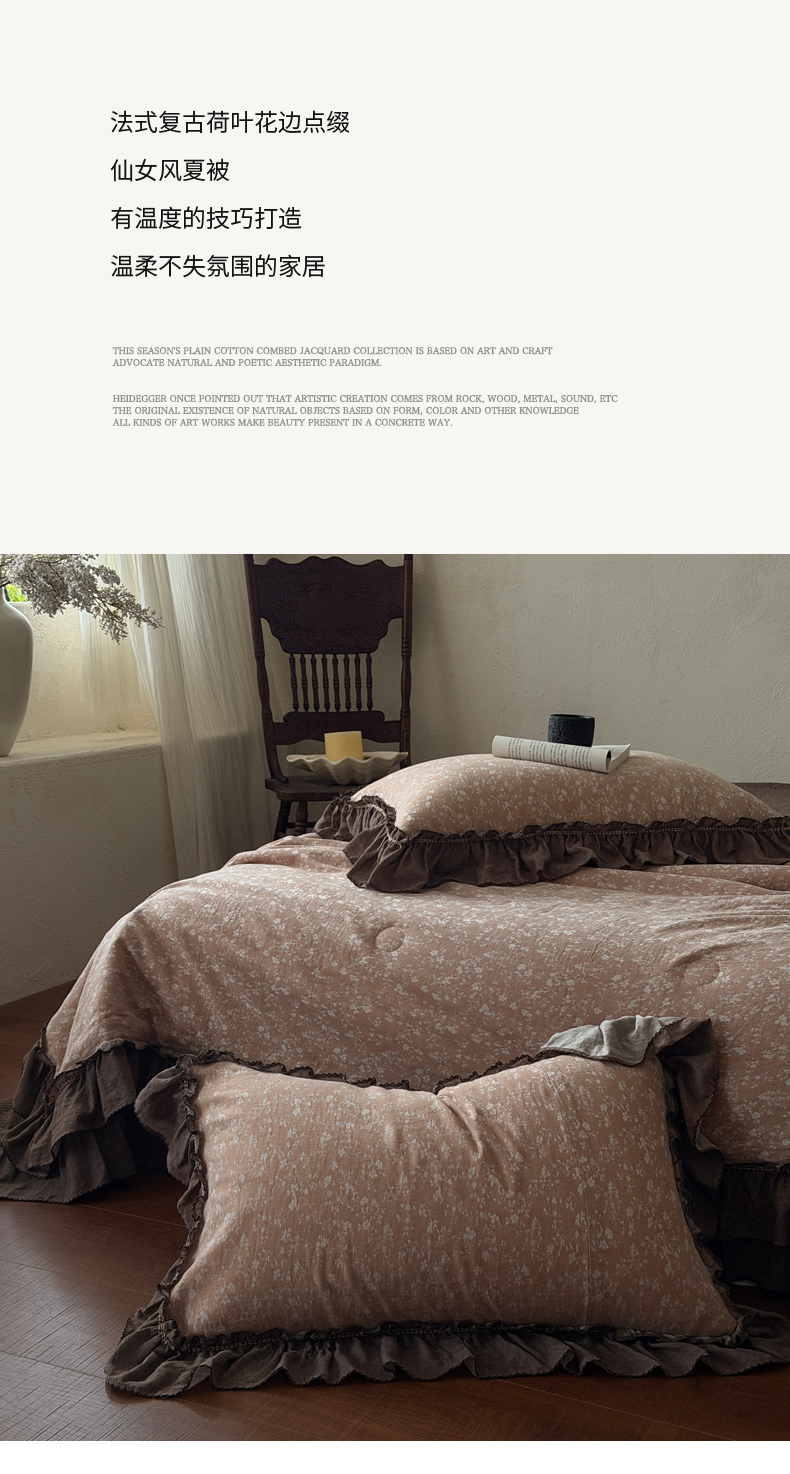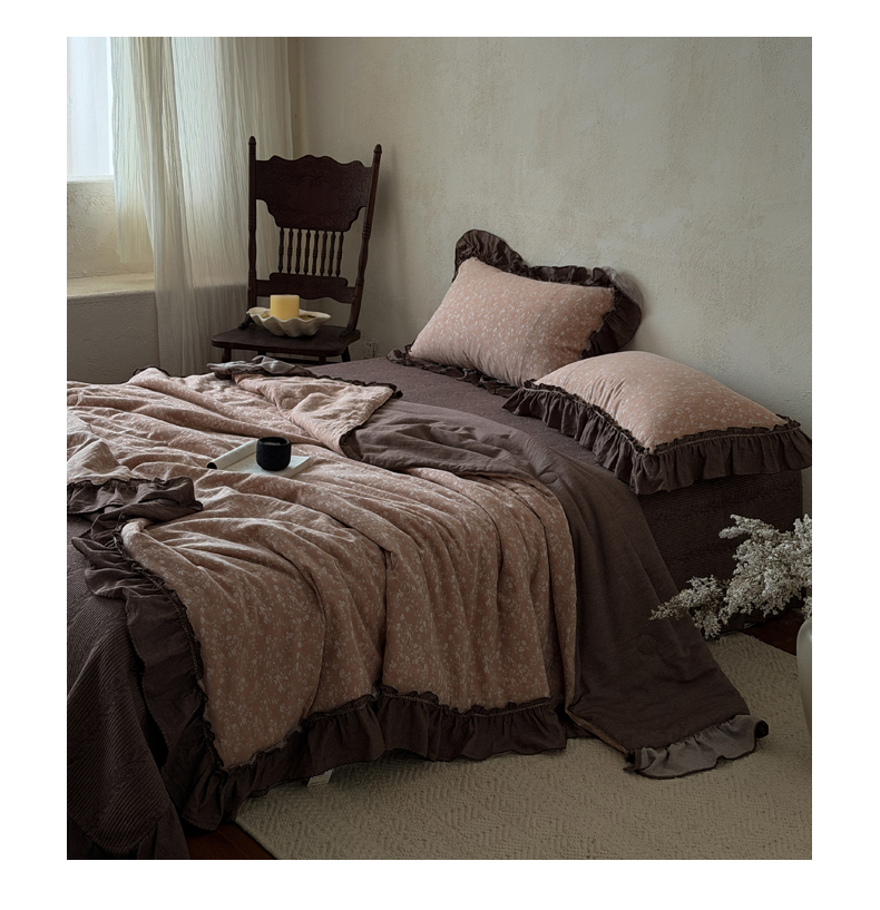 (总)米菲 2025新款全棉双层纱花边被被子被芯,初春,简约格调,南枝