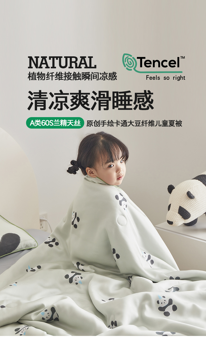 (总)荷马之梦 2026新款A类60s兰精天丝原创手绘卡通大豆纤维儿童夏被,花生企鹅,萌小狮,米米兔,胖达,亲亲恐龙