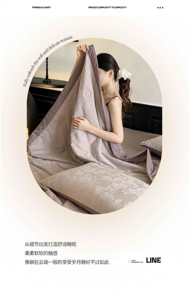 (总)宜代光年 2026新款亚麻大提花贡缎磨毛四件套系列 侘寂风花型系列,斑驳-米麻,观花芷-米麻,观花芷-银灰,清玉絮-葡萄紫,清玉絮-鲜蓝,素简