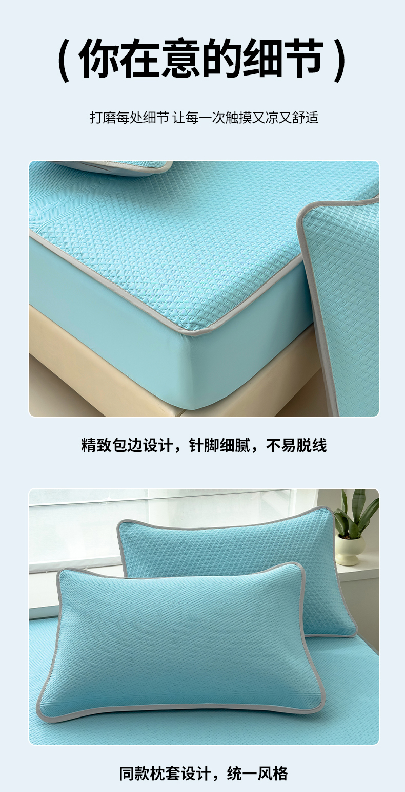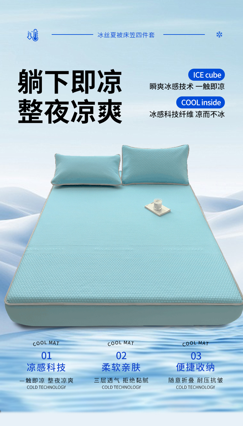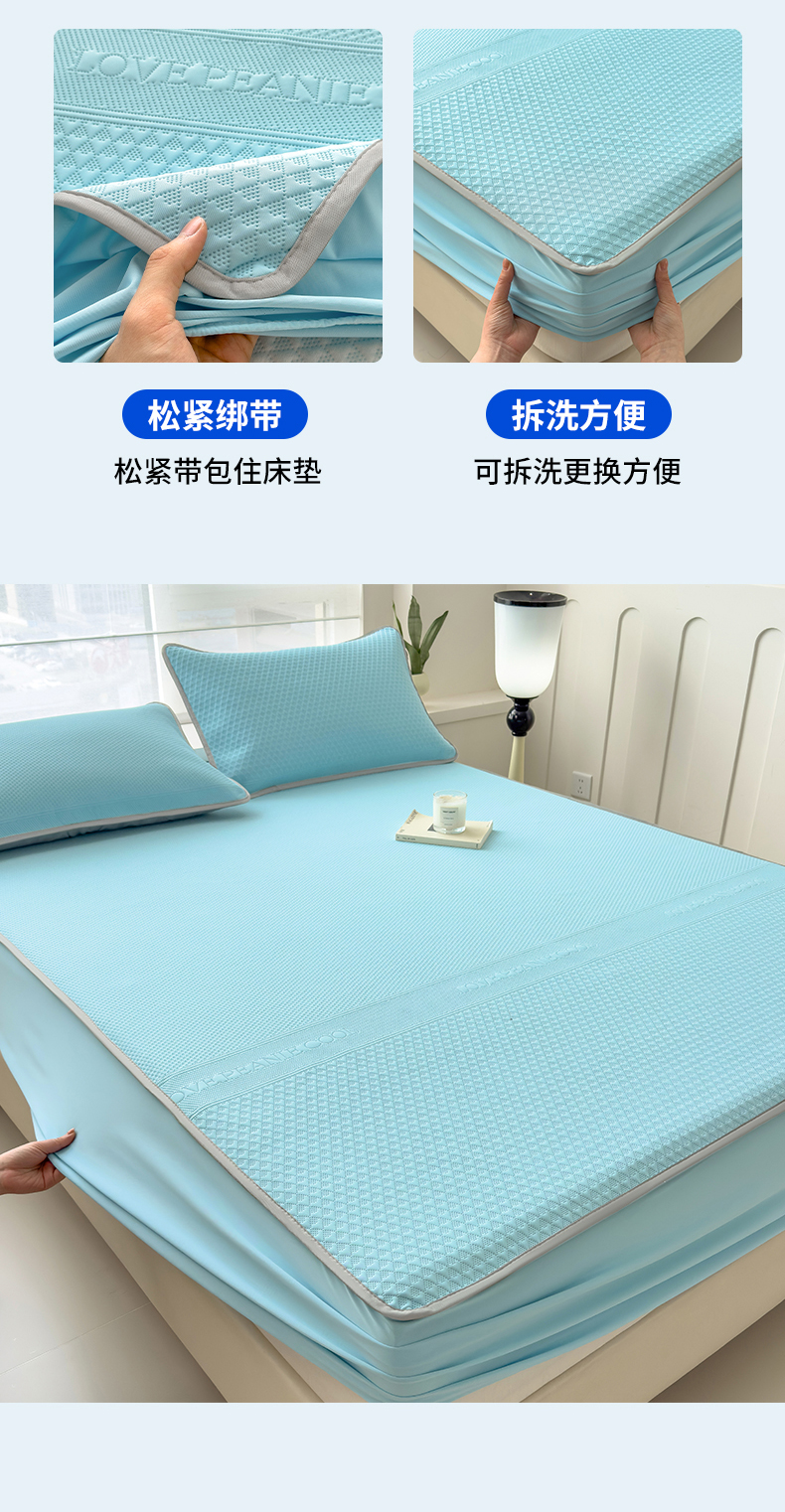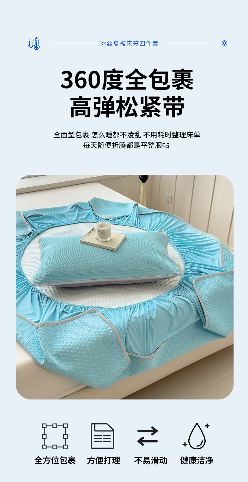 当前位置: 91家纺网 > 商品网购 > 床上用品 > 凉席 > 其他凉席 > 乐家欣 2026新款凉感冰丝夏被床笠四件套 床笠冰丝-清水蓝