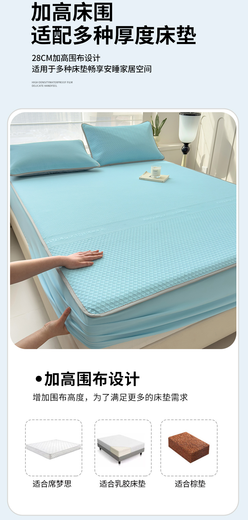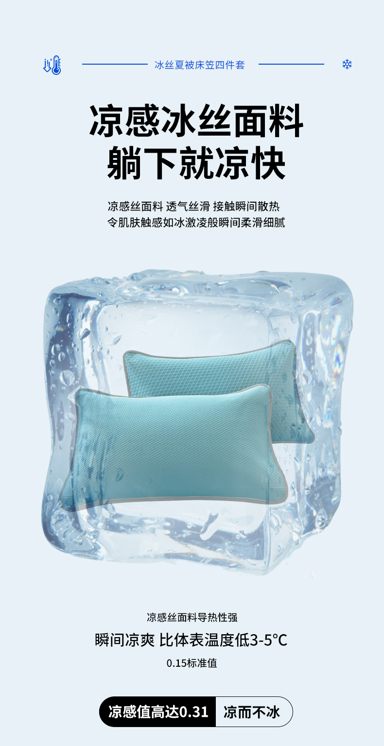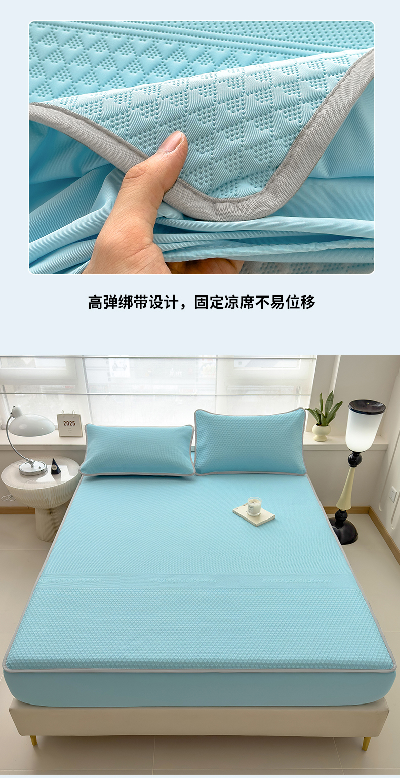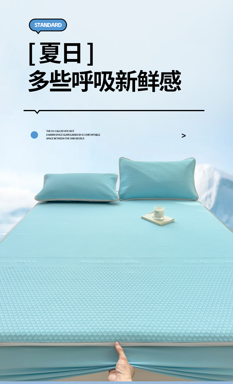 当前位置: 91家纺网 > 商品网购 > 床上用品 > 凉席 > 其他凉席 > 乐家欣 2026新款凉感冰丝夏被床笠四件套 床笠冰丝-清水蓝