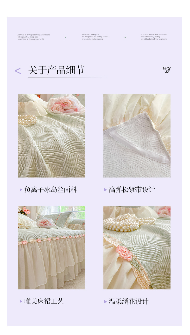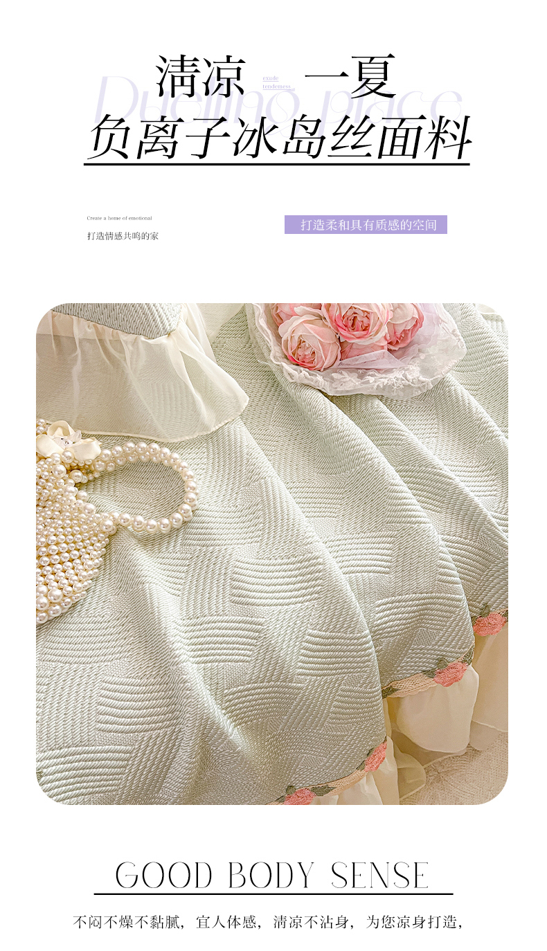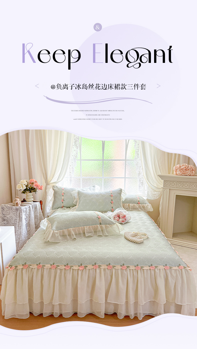 当前位置: 91家纺网 > 商品网购 > 床上用品 > 凉席 > 其他凉席 > (总)瑞宝 2026新款负离子冰岛丝花边床裙款凉席席子三件套-莉莉安