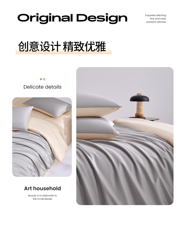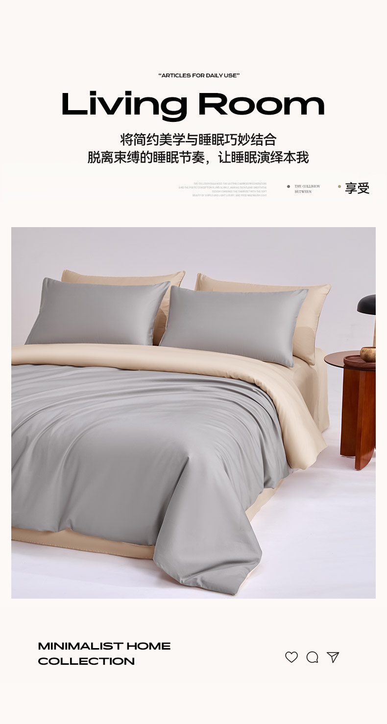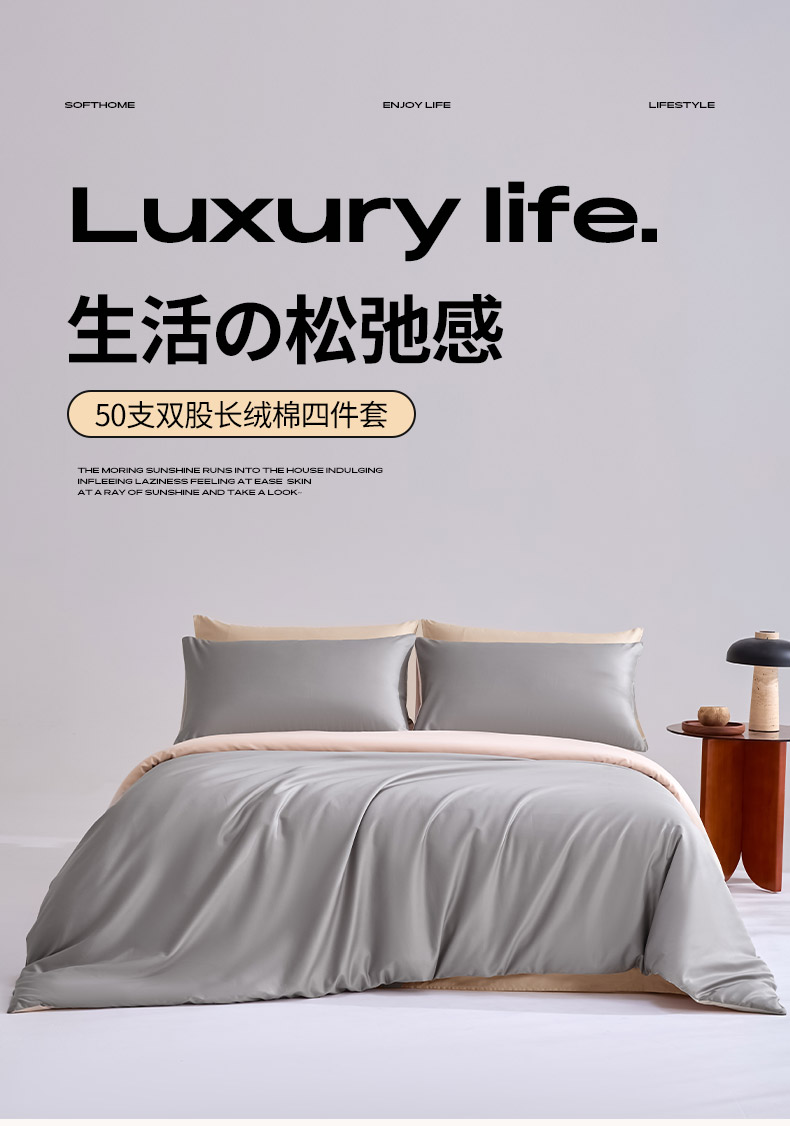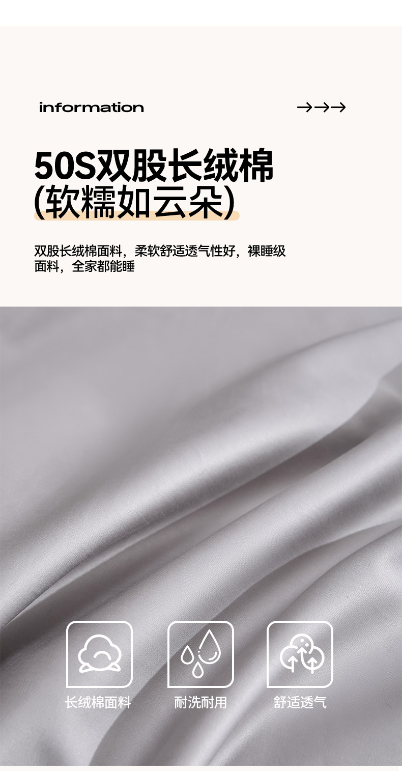 商品名称:合欢(原天一阁) 2026新款50s双股长绒棉全棉纯棉纯色四件套 时空灰+香槟金