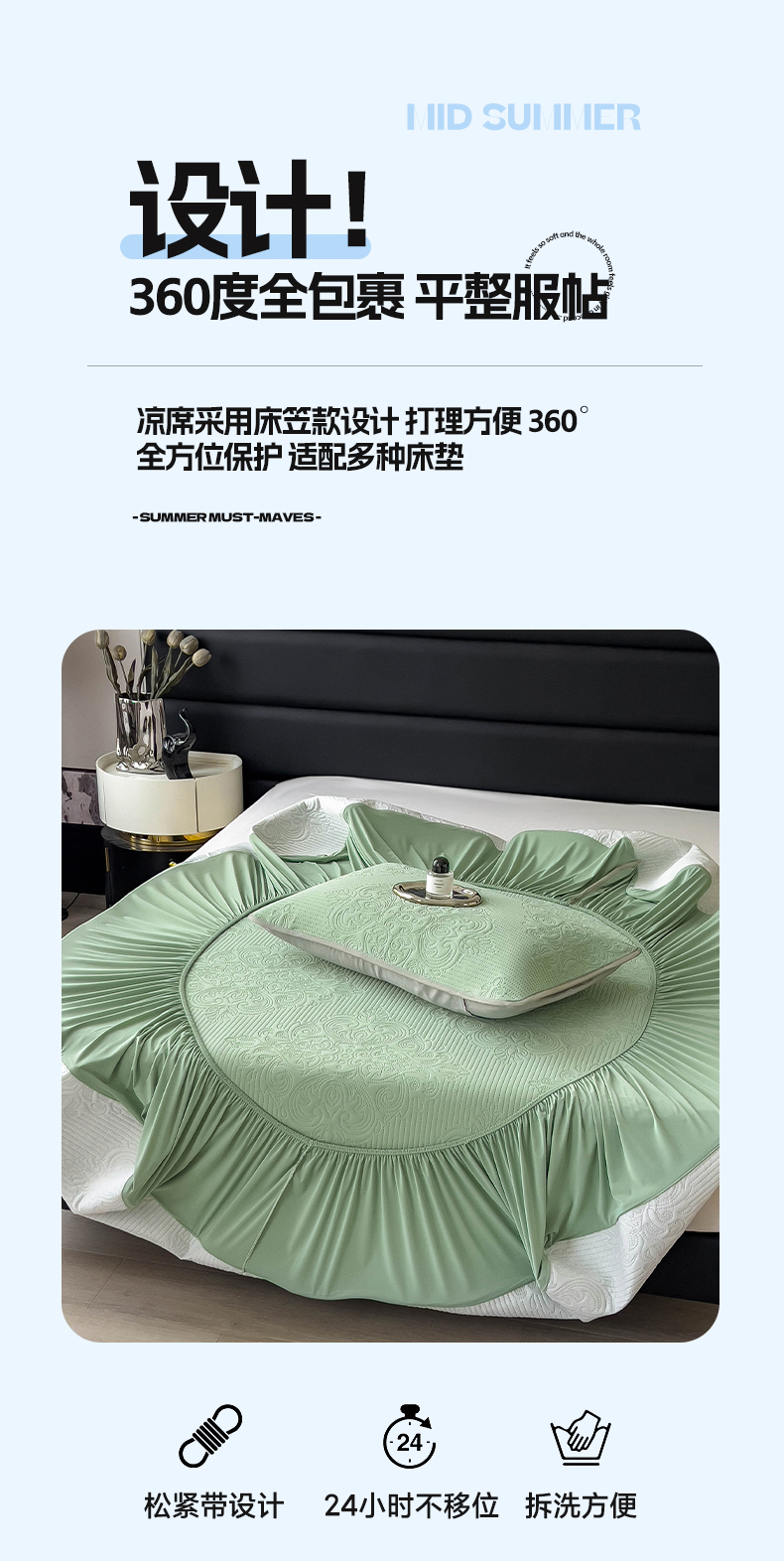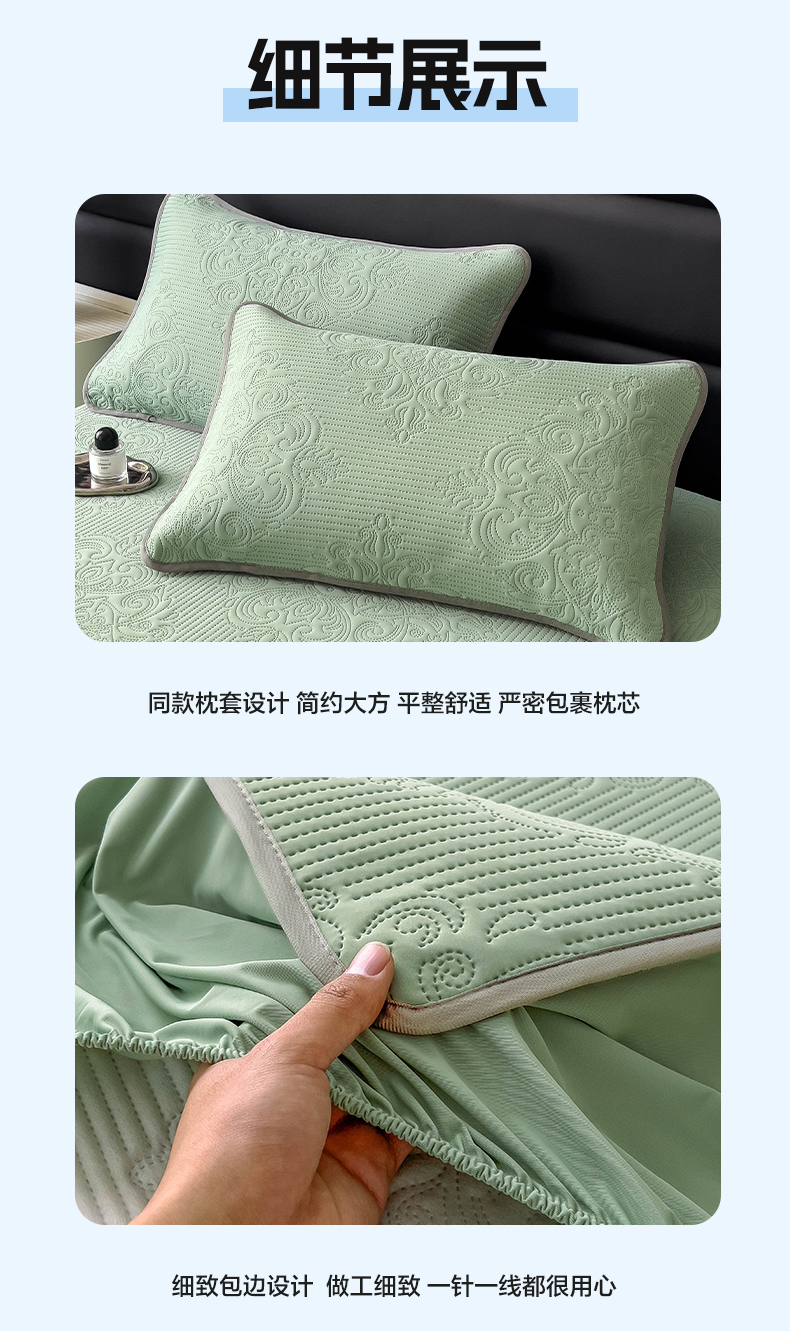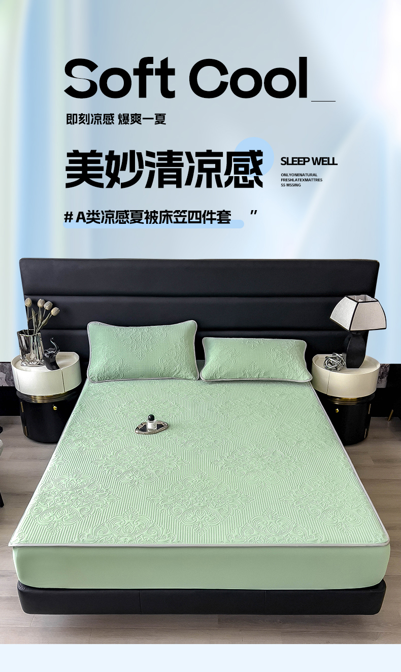 当前位置: 91家纺网 > 商品网购 > 床上用品 > 凉席 > 其他凉席 > 乐家欣 2026新款凉感欧式夏被床笠四件套 欧式床笠-松绿