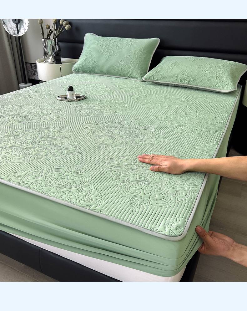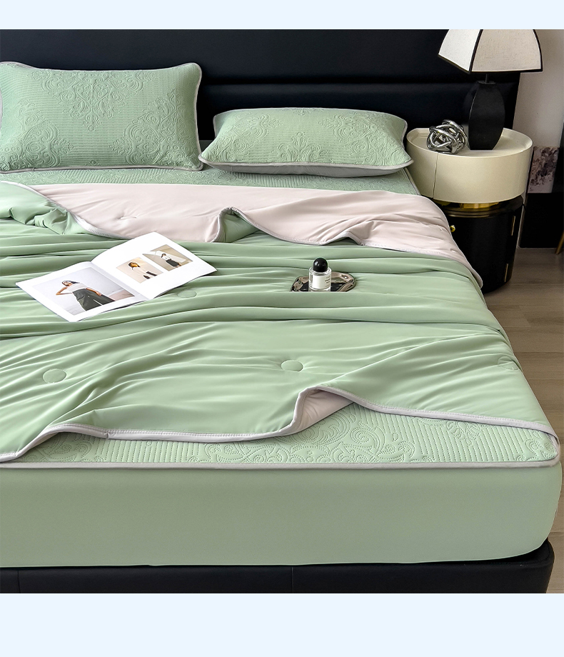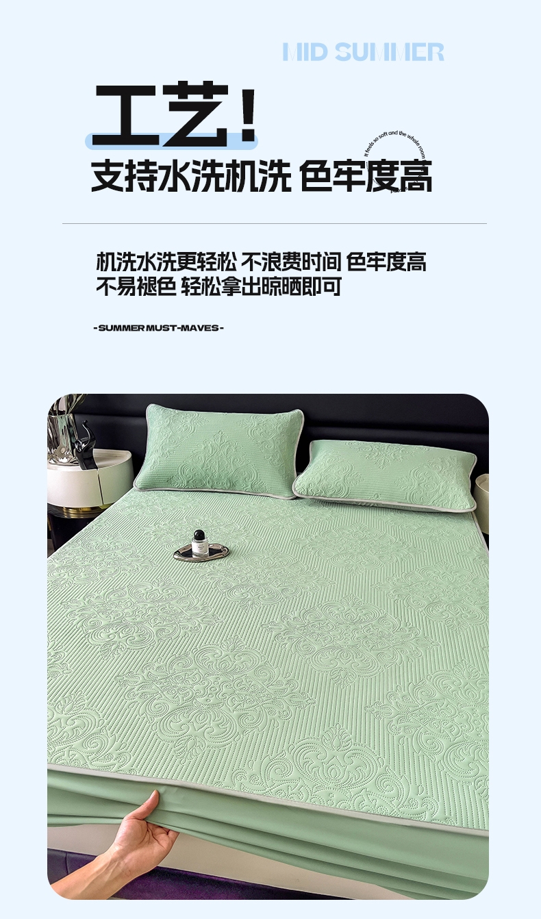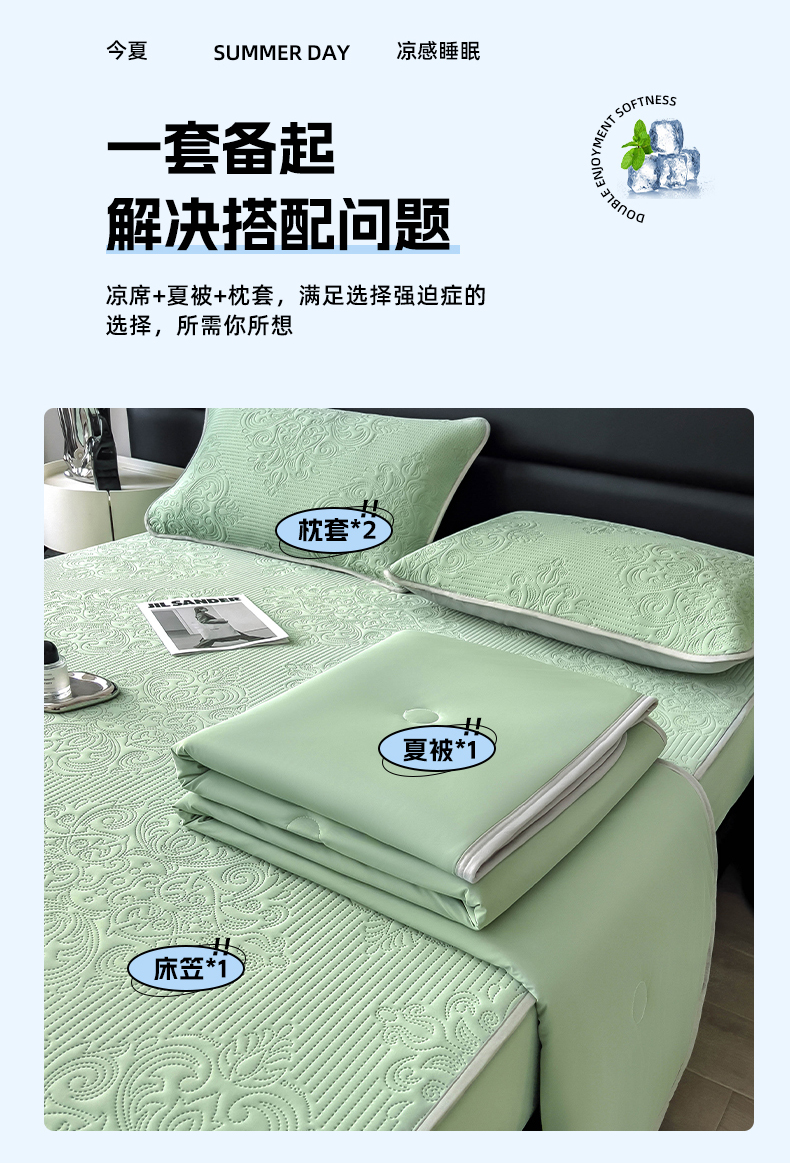 当前位置: 91家纺网 > 商品网购 > 床上用品 > 凉席 > 其他凉席 > 乐家欣 2026新款凉感欧式夏被床笠四件套 欧式床笠-松绿