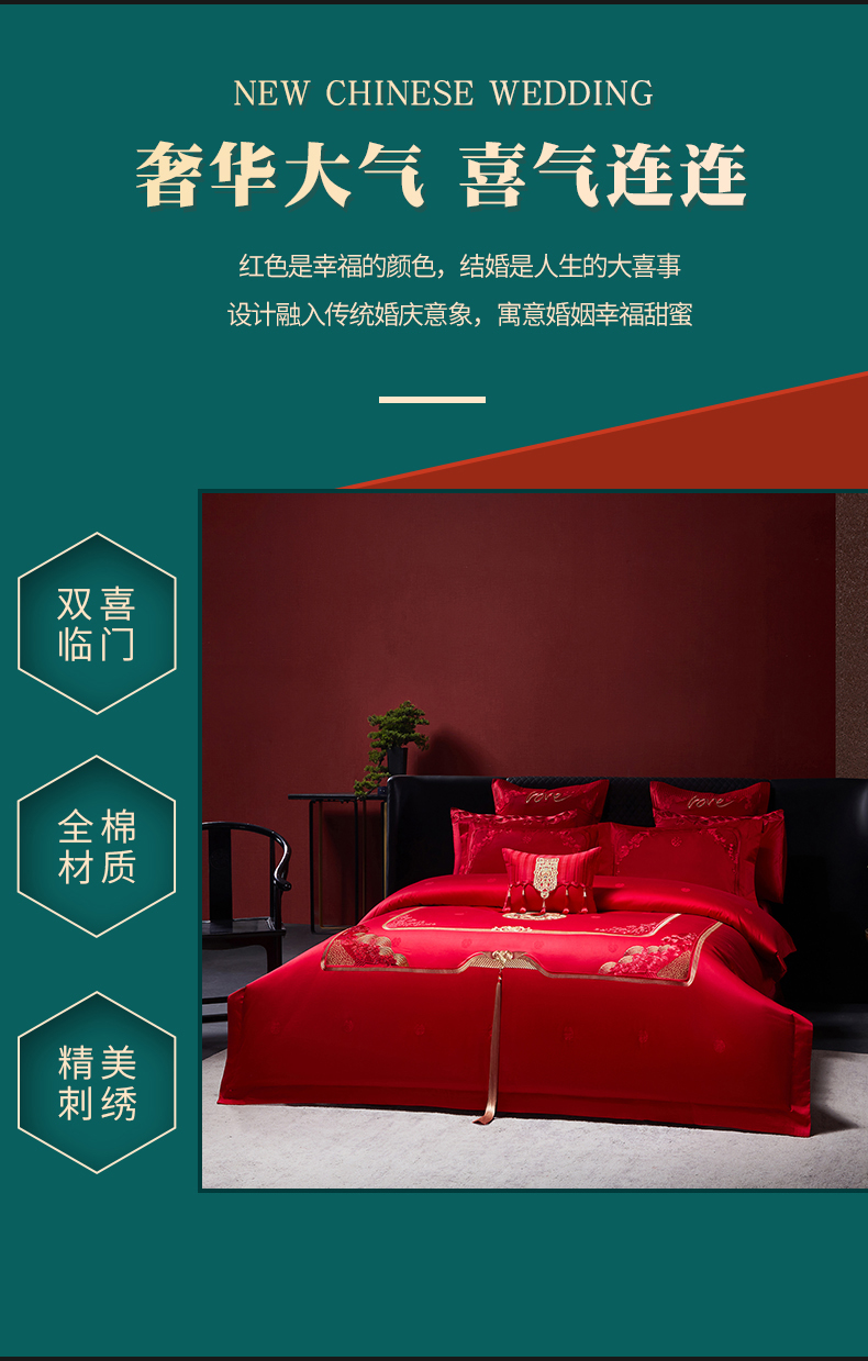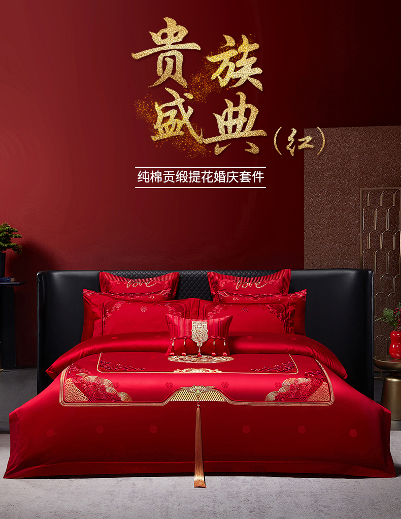 当前位置: 91家纺网 > 商品网购 > 床品套件 > 四件套 > 婚庆四件套 > 红翻天婚庆 2026新款全棉纯棉刺绣款婚庆系列四件套多件套-贵族盛典系列 100S贵族盛典-红