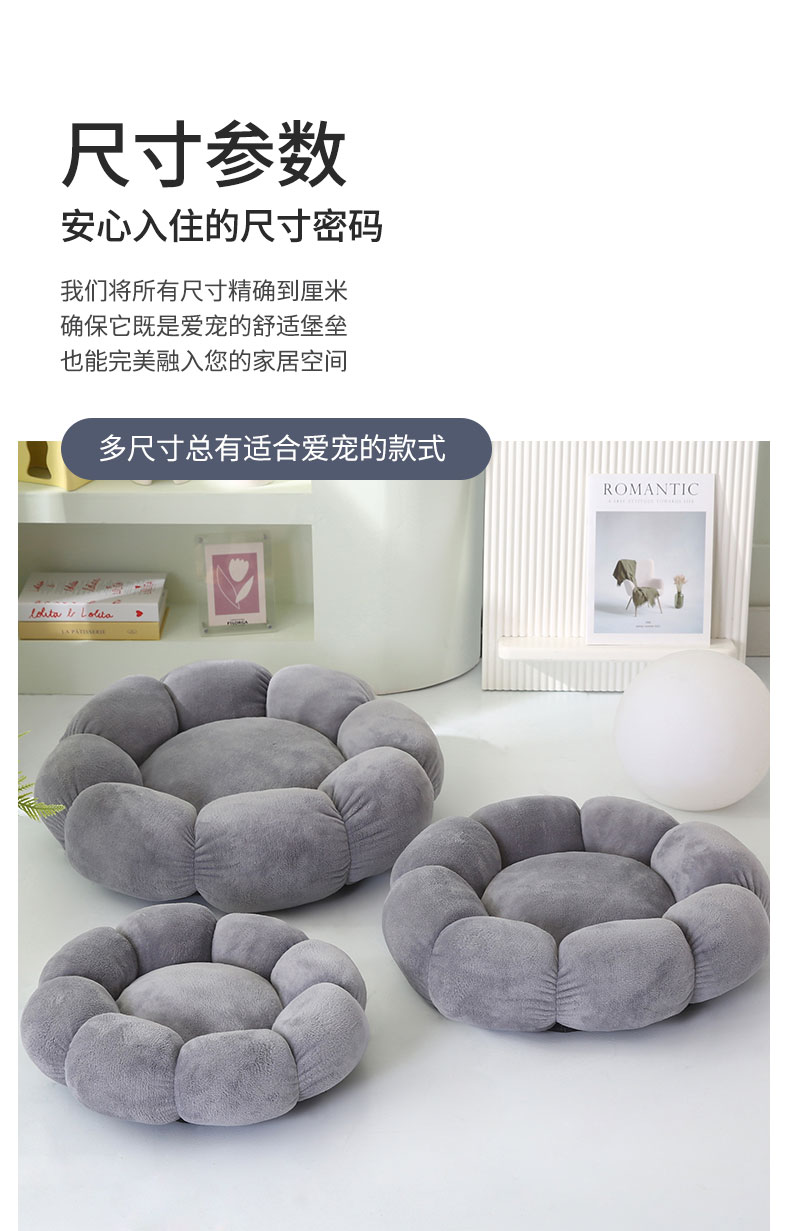(总)永光家居 2026新款花瓣宠物窝猫窝狗窝四季通用猫咪用品狗狗用品,灰色 40x40cm,蓝色 40x40cm,驼色 40x40cm,组合图仅供展示-不可下单 40x40cm,灰色 50x50cm,蓝色 50x50cm,驼色 50x50cm,组合图仅供展示-不可下单 50x50cm,灰色 60x60cm,蓝色 60x60cm,驼色 60x60cm,组合图仅供展示-不可下单 60x60cm,粉色 40x40cm,粉色 50x50cm,粉色 60x60cm