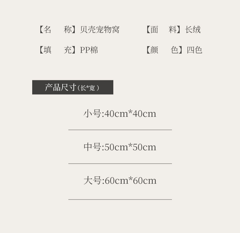 (总)永光家居 2026新款贝壳宠物窝猫窝狗窝四季通用猫咪用品狗狗用品,灰色 40x40cm,绿色 40x40cm,咖色 40x40cm,粉色 40x40cm,组合图仅供展示-不可下单 40x40cm,灰色 50x50cm,绿色 50x50cm,咖色 50x50cm,粉色 50x50cm,组合图仅供展示-不可下单 50x50cm,灰色 60x60cm,绿色 60x60cm,咖色 60x60cm,粉色 60x60cm,组合图仅供展示-不可下单 60x60cm