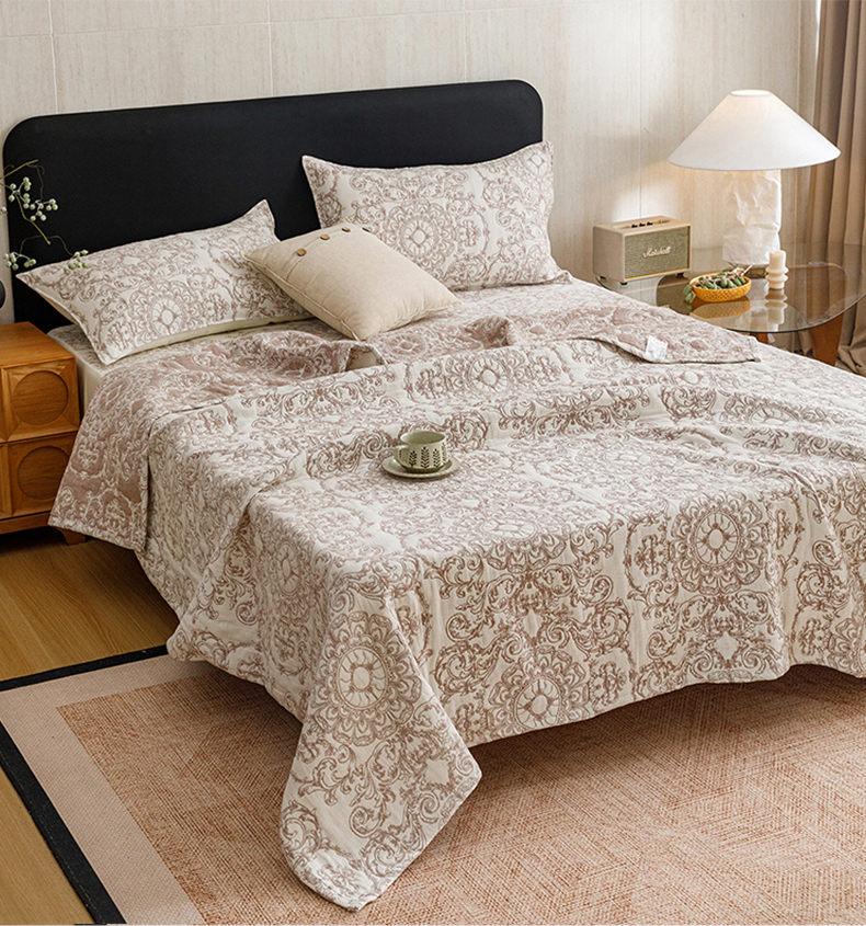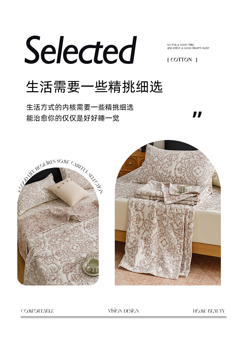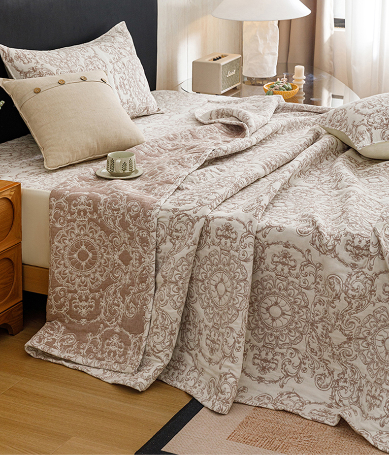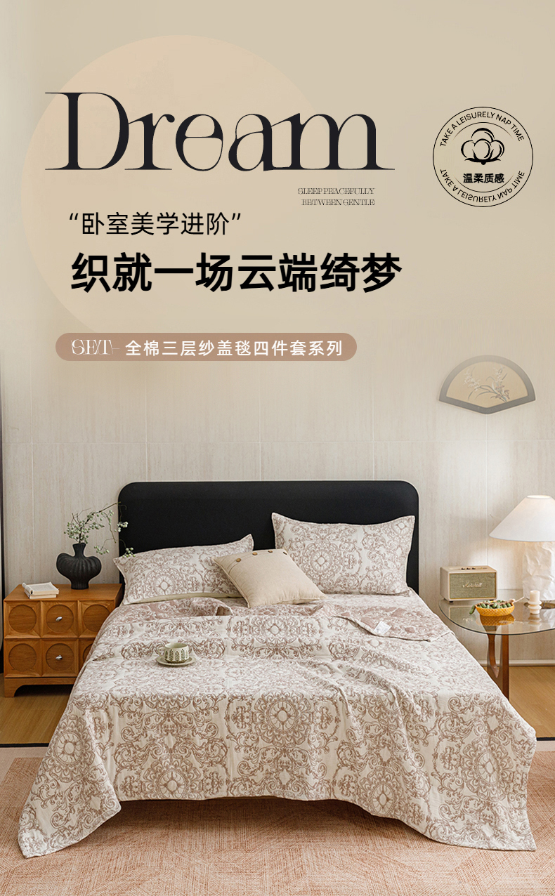 当前位置: 91家纺网 > 商品网购 > 床品套件 > 四件套 > 夏被四件套 > 悦然毛巾被 2026新款全棉三层纱加厚夏被四件套毛巾床笠盖毯毛毯枕套夏凉被空调被 棕织