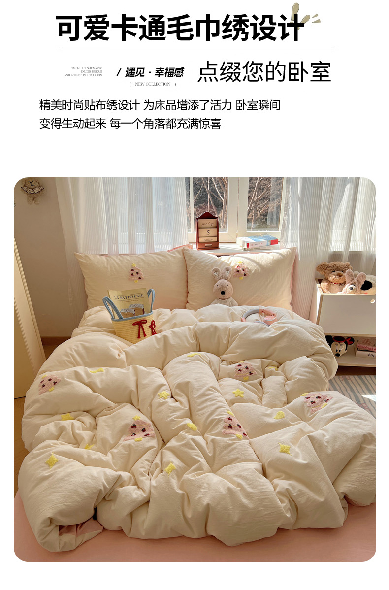 当前位置: 91家纺网 > 商品网购 > 床品套件 > 四件套 > 水洗棉四件套 > 慕尚家纺 2026春夏新款色织水洗棉毛巾绣四件套 快乐小马