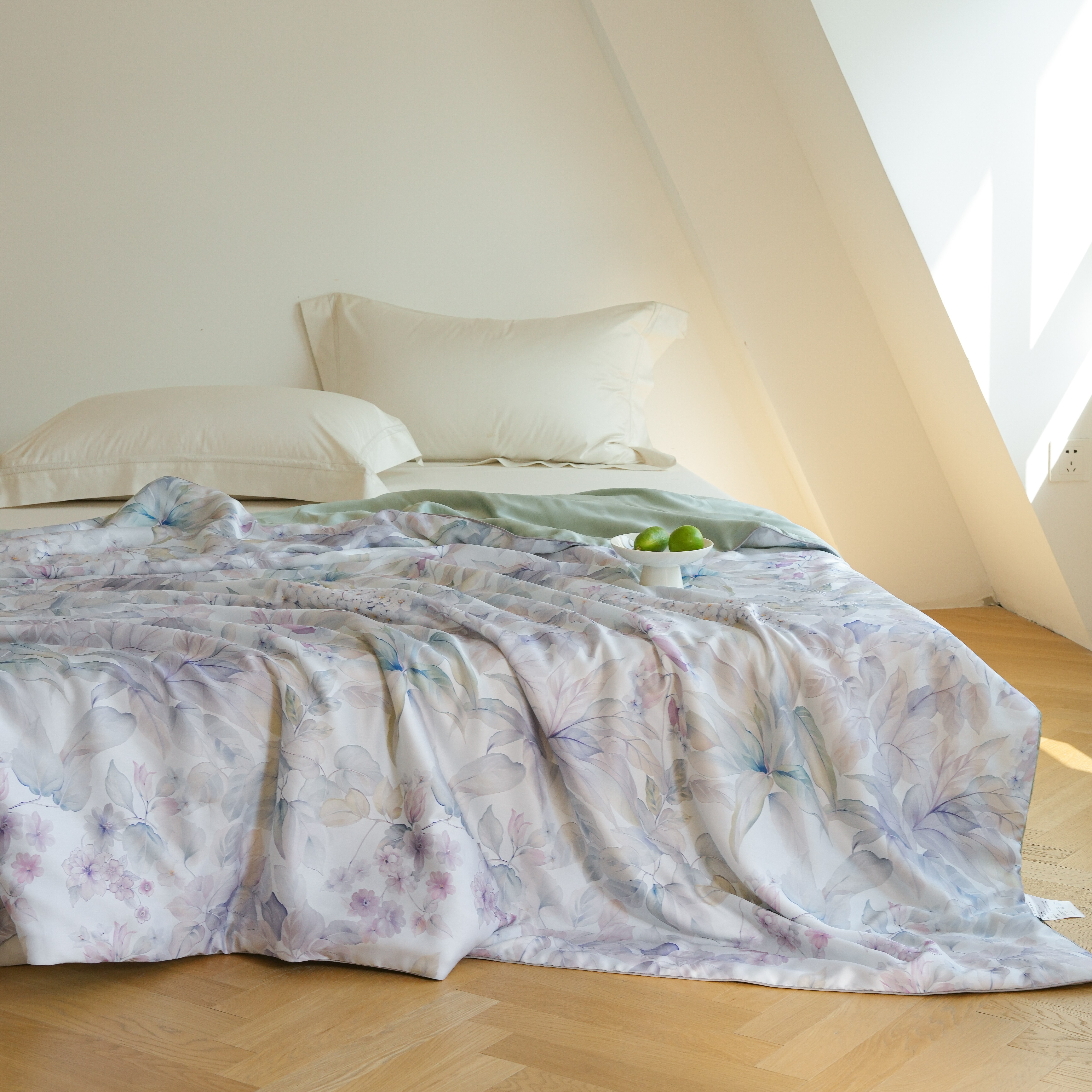 商品名称:沐晴家纺 2026新款春夏数码印花兰精天丝夏被空调被 慕莎-绿