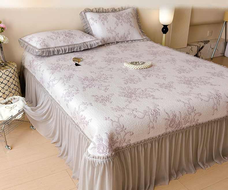 (总)莱家富 2026新款A类母婴级法式风冰豆豆凉席夏天冰丝席夏季可机洗家用软席床裙款,思琳娜-淡雅紫,思琳娜-冰粉,思琳娜-淡黄,思琳娜-淡蓝,思琳娜-豆咖,思琳娜-豆绿,思琳娜-天空蓝