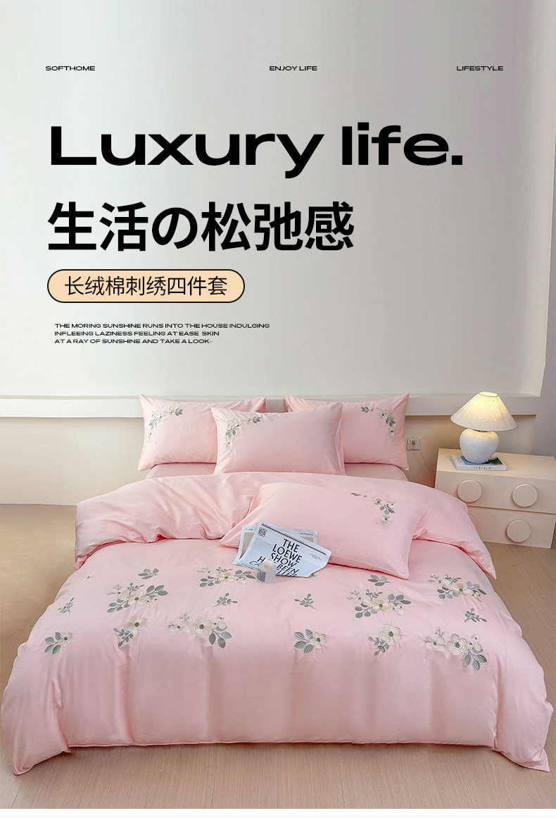 当前位置: 91家纺网 > 商品网购 > 床品套件 > 四件套 > 长绒棉四件套 > 合欢(原天一阁) 2026春夏新款50s双股长绒棉100支刺绣全棉纯棉四件套礼盒装 清欢-暖心粉