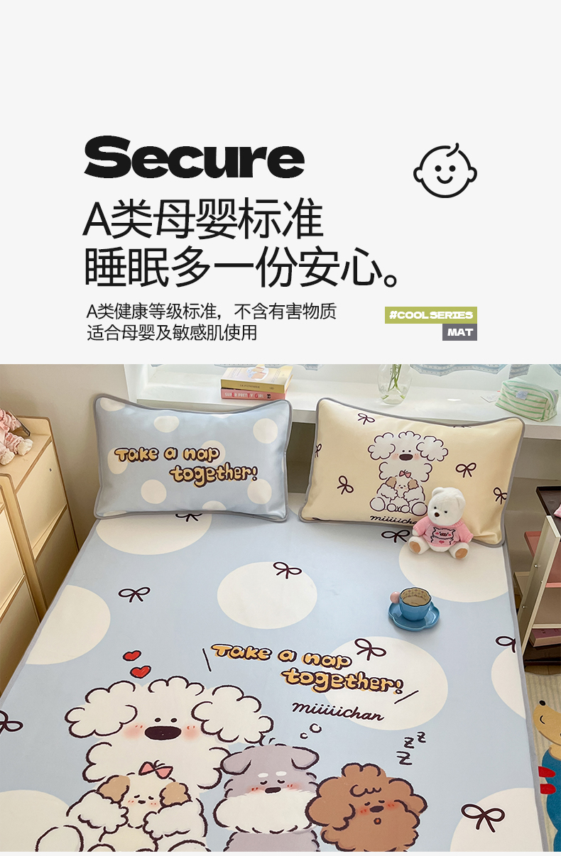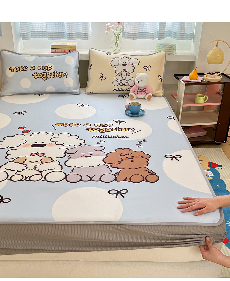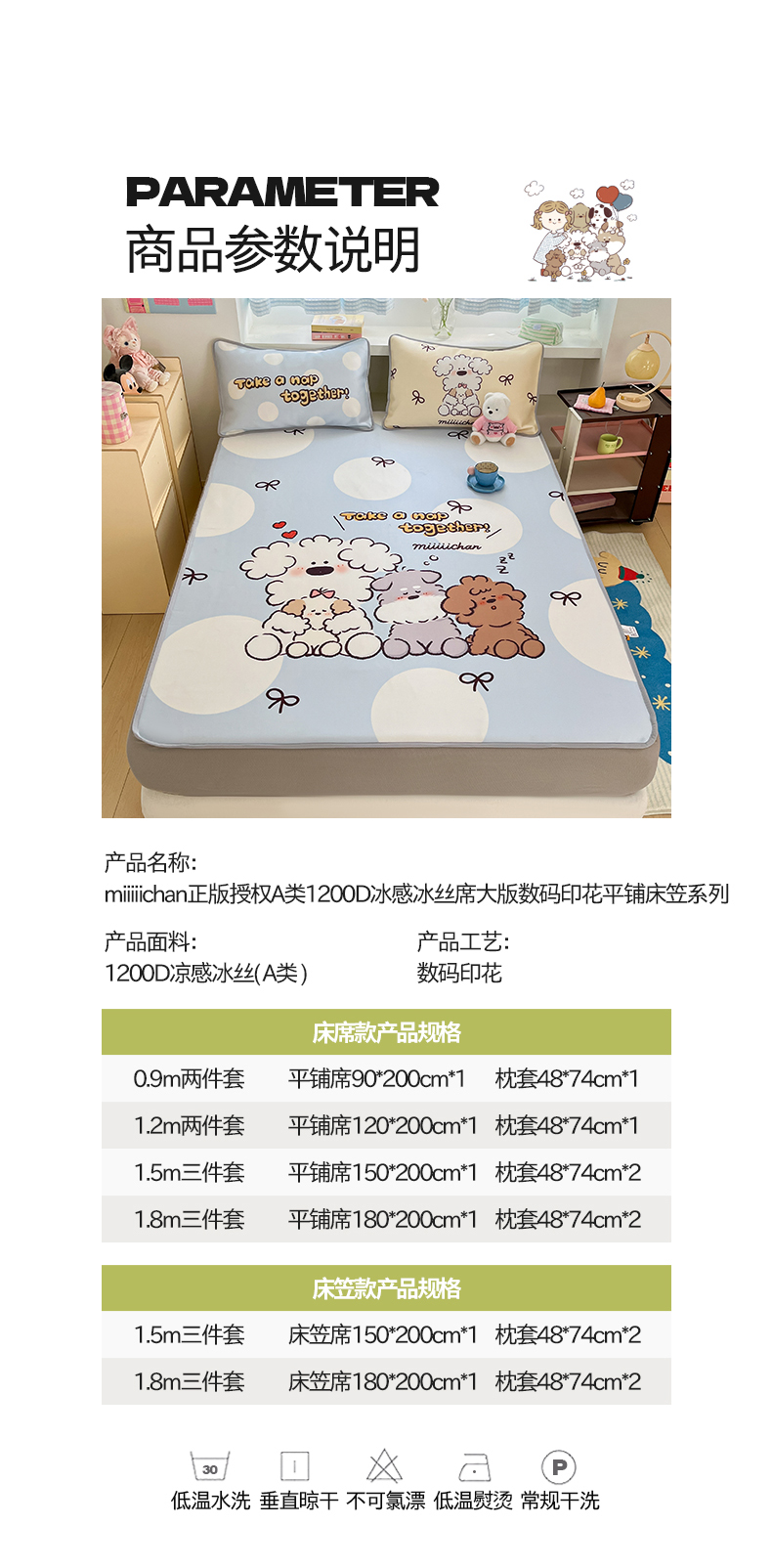 (总)桃子家居 2026新款正版授权miiiiichan大版数码印花1200D凉席三件套平铺床笠,冰感席miiiiichan-点点泡芙狗,冰感席miiiiichan-狗狗乐园,冰感席miiiiichan-蓝色波点熊,冰感席miiiiichan-绿彩色波点狗,冰感席miiiiichan-俏皮小狗,冰感席miiiiichan-曲奇贪吃熊,冰感席miiiiichan-星愿小狗