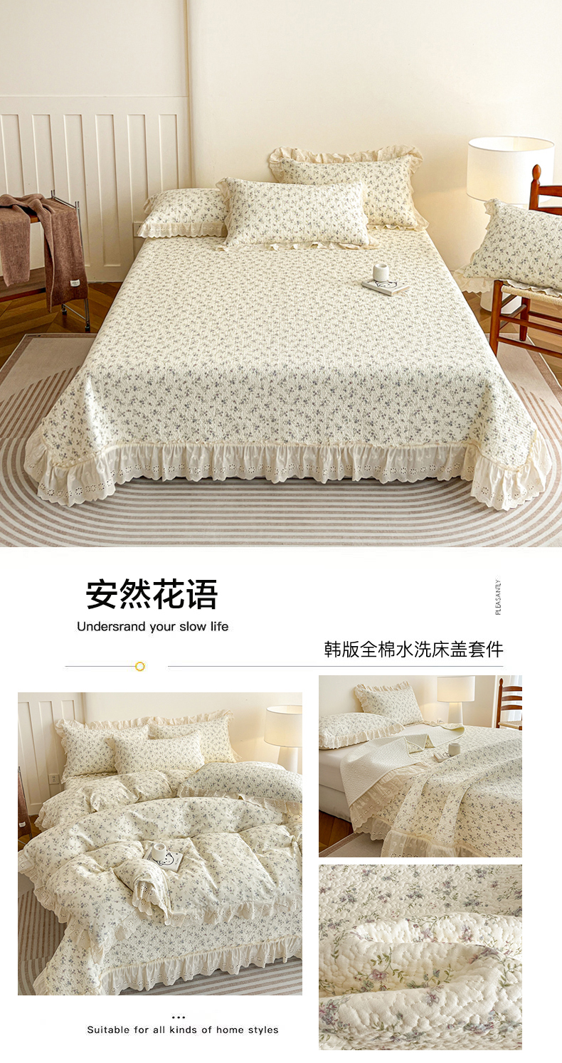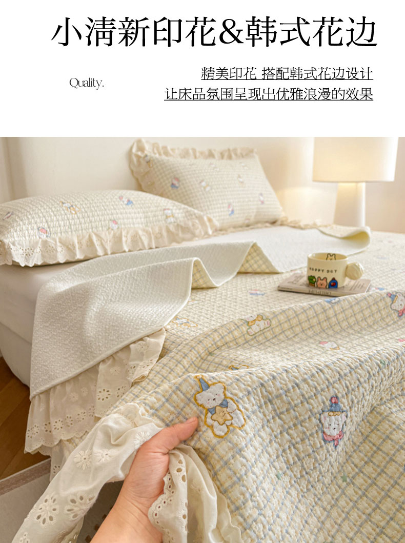 当前位置: 91家纺网 > 商品网购 > 床品套件 > 四件套 > 全棉普通四件套 > 羽爱家纺 2026新款全棉水洗韩版花边床盖四件套 甜糯熊熊