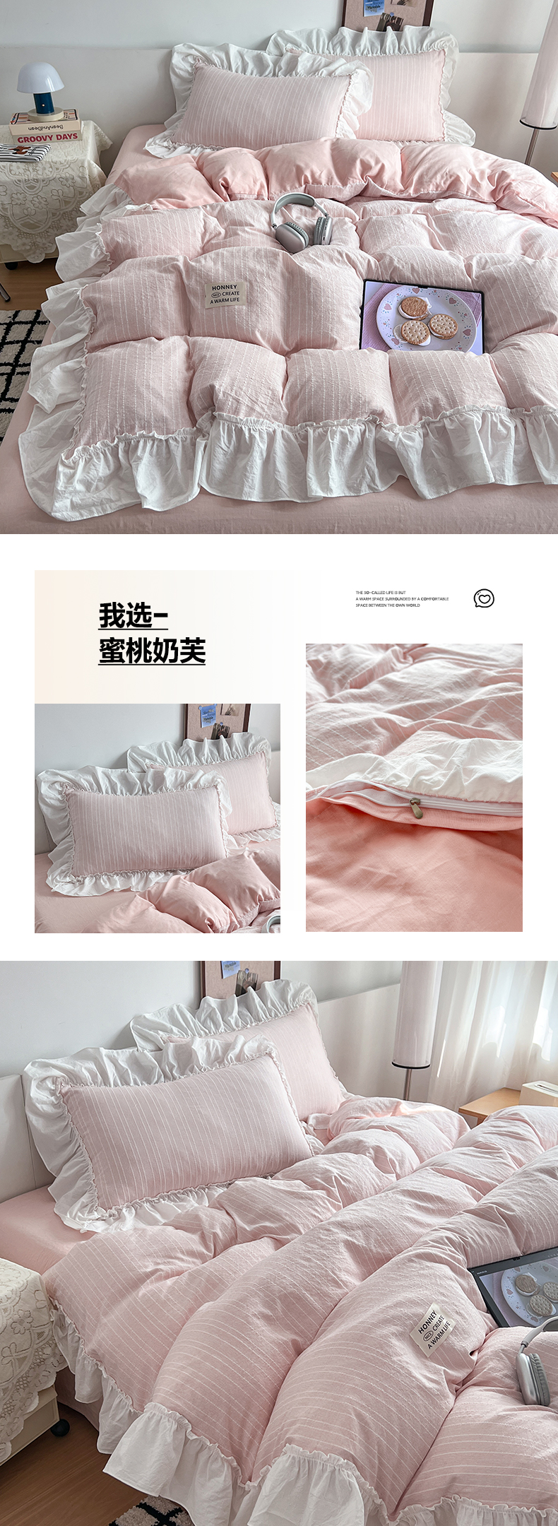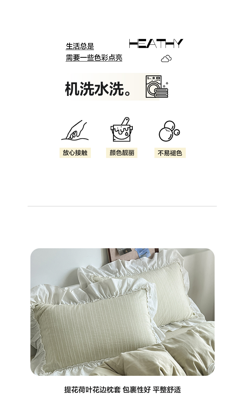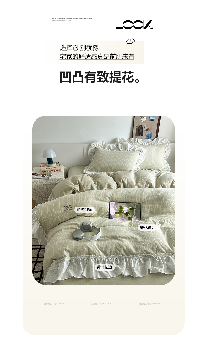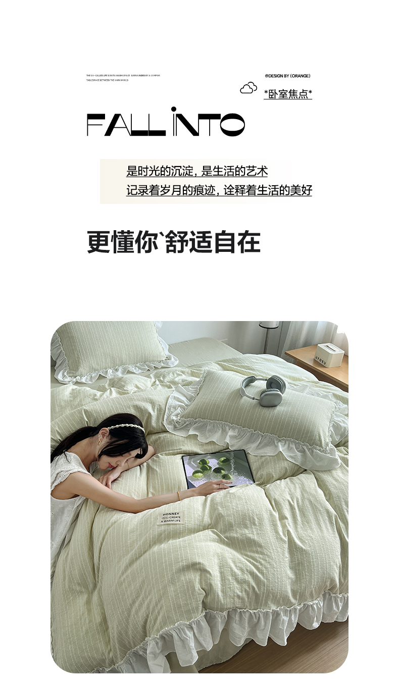 当前位置: 91家纺网 > 商品网购 > 床品套件 > 四件套 > 化纤普通四件套 > 晨曦家纺 2026新款荷叶花边泡芙纱提花四件套可水洗棉四件套少女风 抹茶奶绿