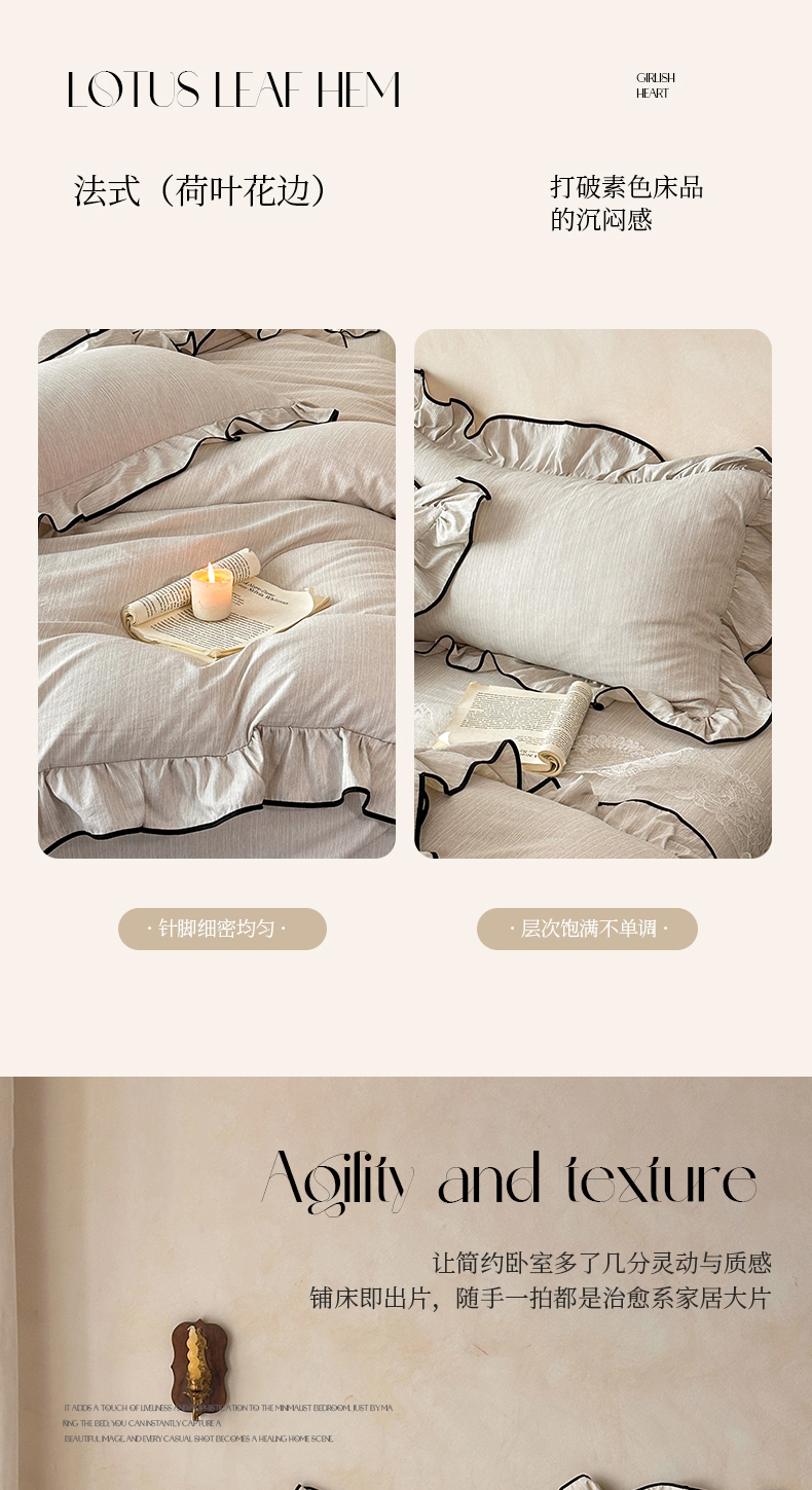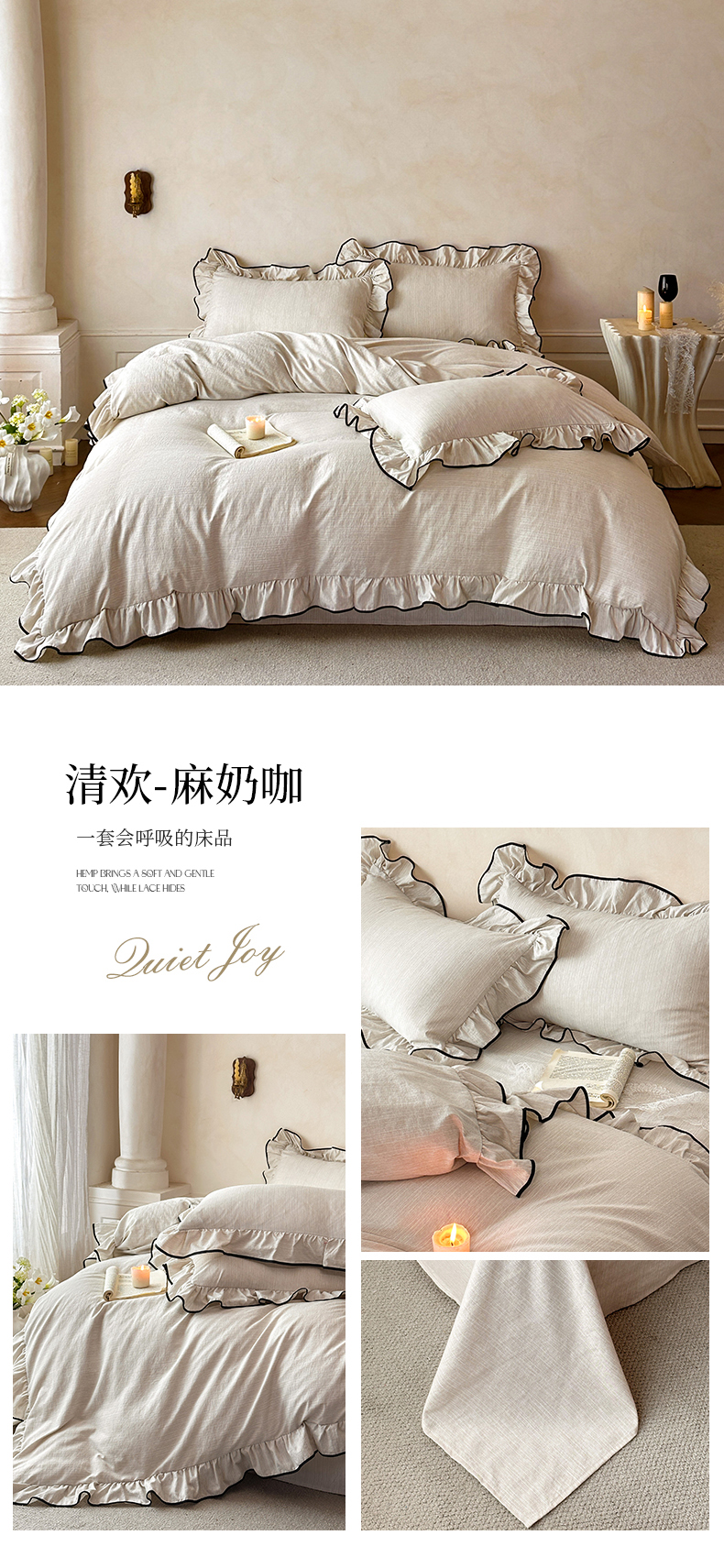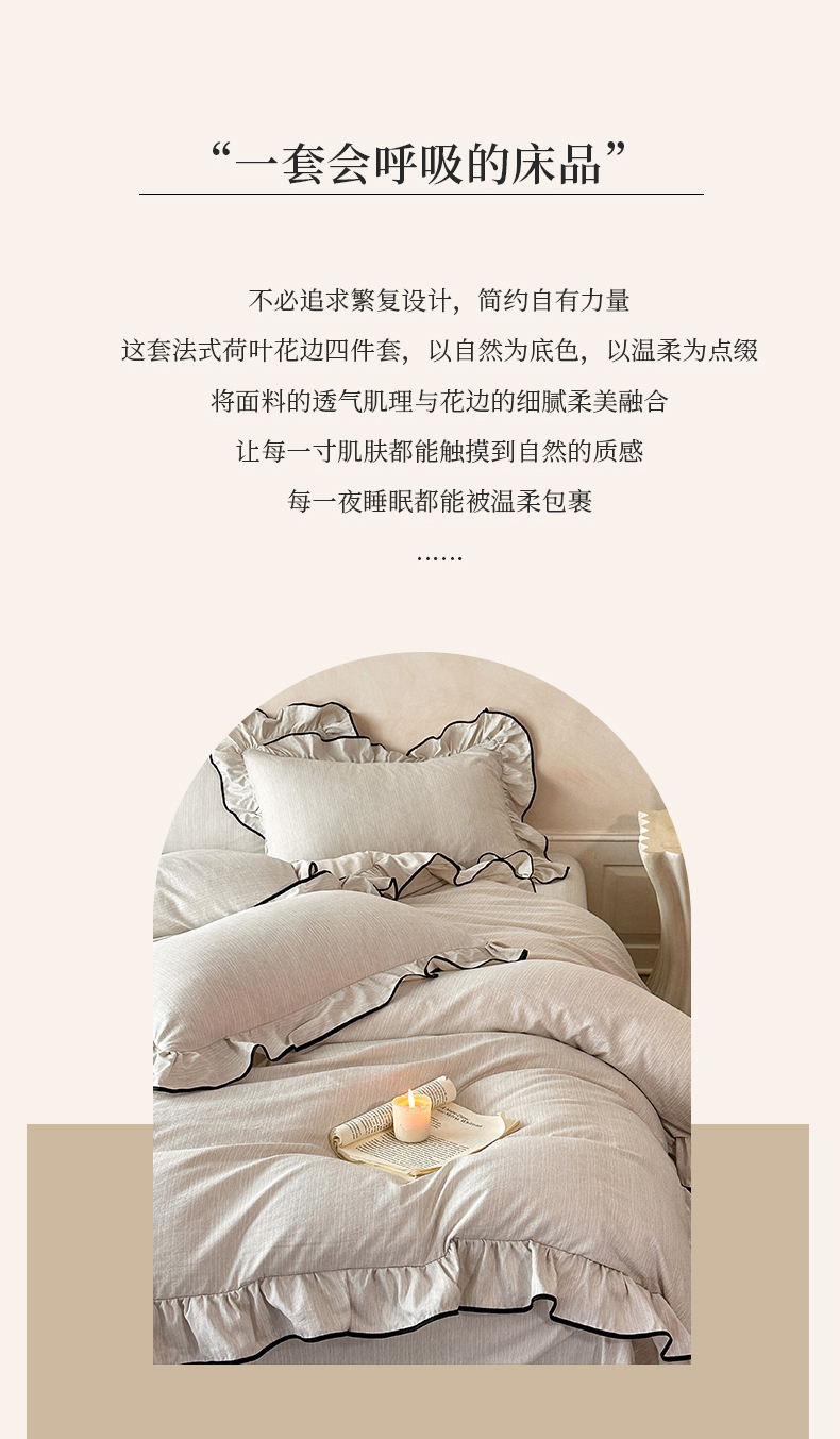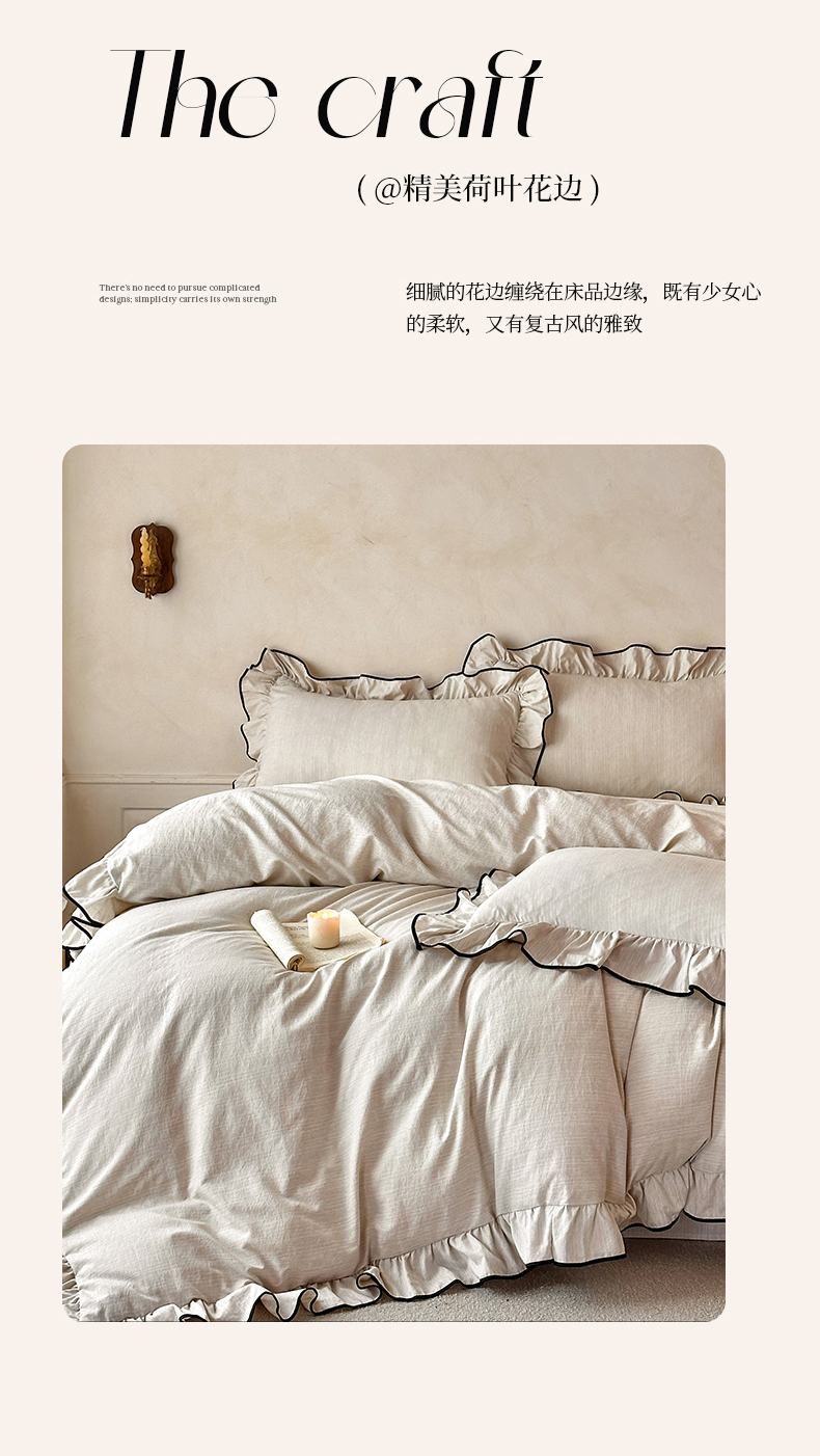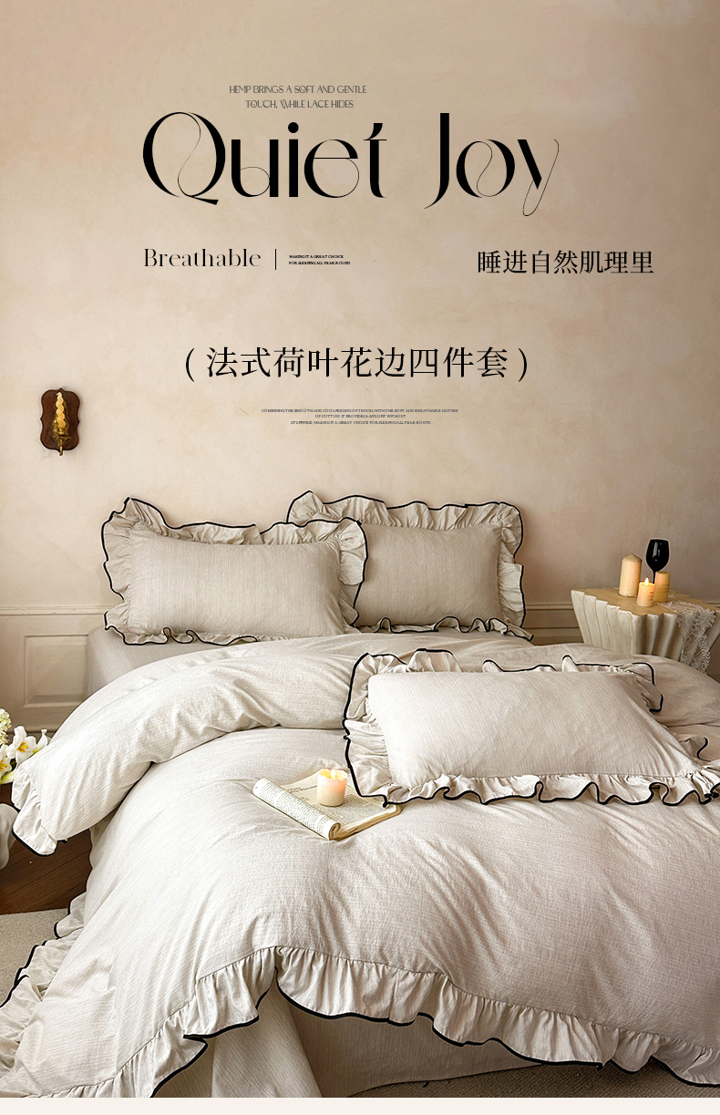 当前位置: 91家纺网 > 商品网购 > 床品套件 > 四件套 > 其它四件套 > (总)苏源家居 2026新款法式黑包边亚麻公主风荷叶边四件套-清欢