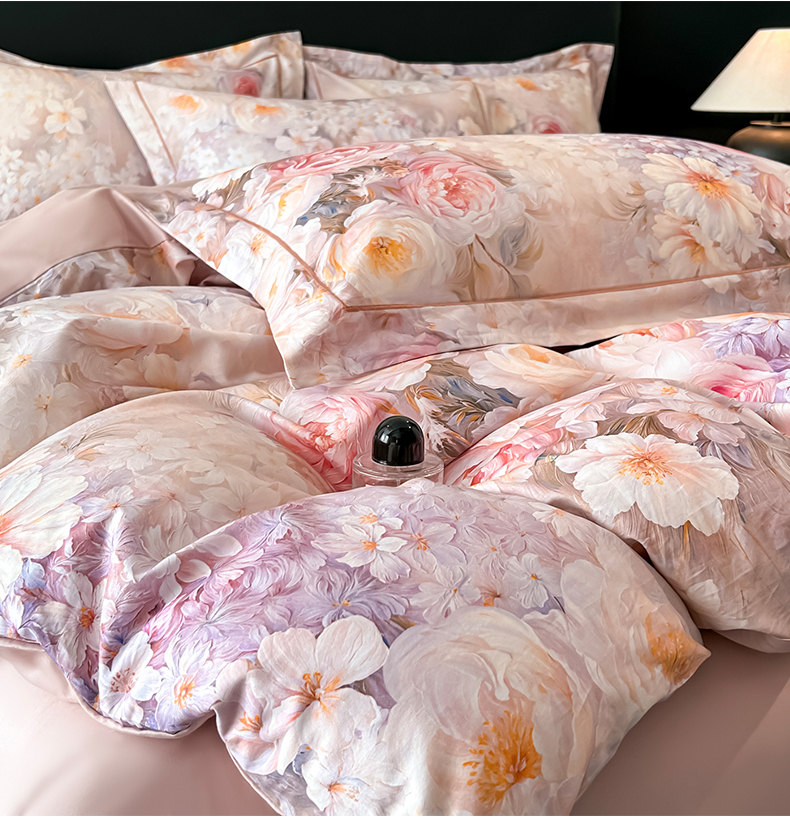 (总)启航家居 2025新款全棉铂金棉数码印花四件套,风香花倦,花的嫁纱,洛香忆梦绿,暮云春树灰,翩若惊鸿粉,普罗旺斯紫,新塞纳舞曲红,新塞纳舞曲紫