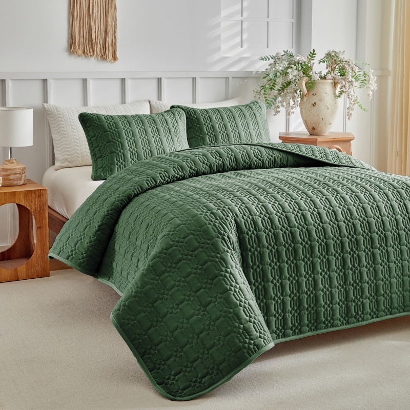 (总)温宁2025新款跨境外贸专供正方格床盖,绿色,米色,银灰