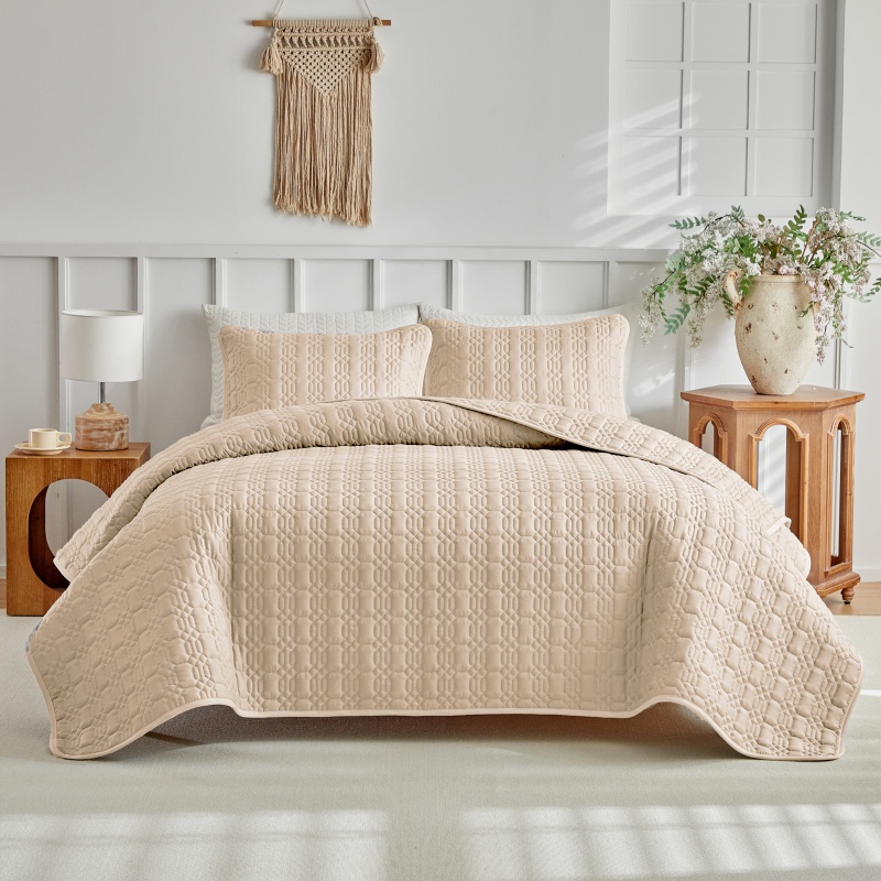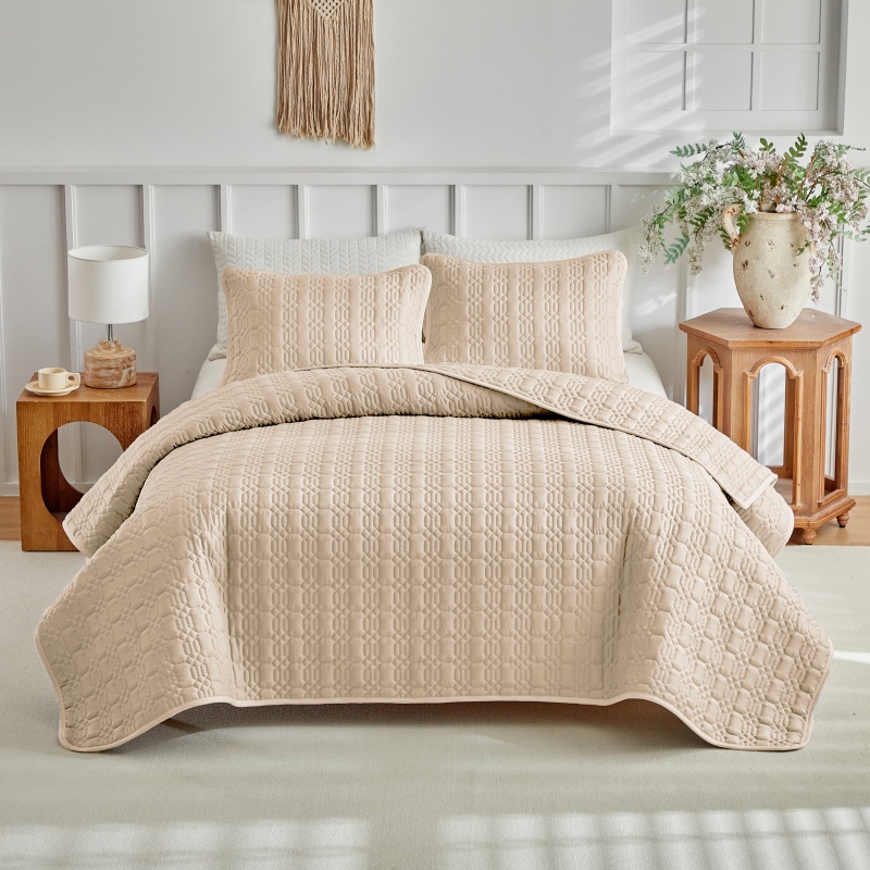 商品名称:(总)温宁 2026年素色床盖三件套 国外薄被第一批--节节高 跨境,外贸,亚马逊,shein,temu