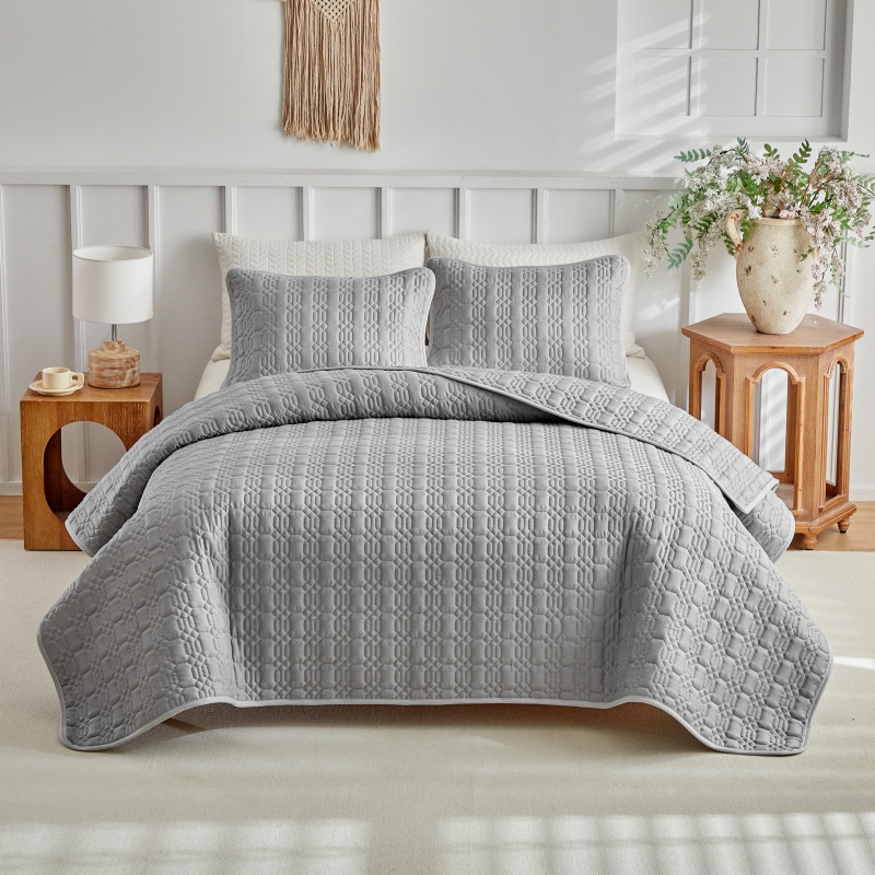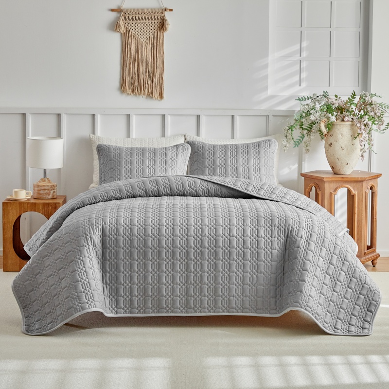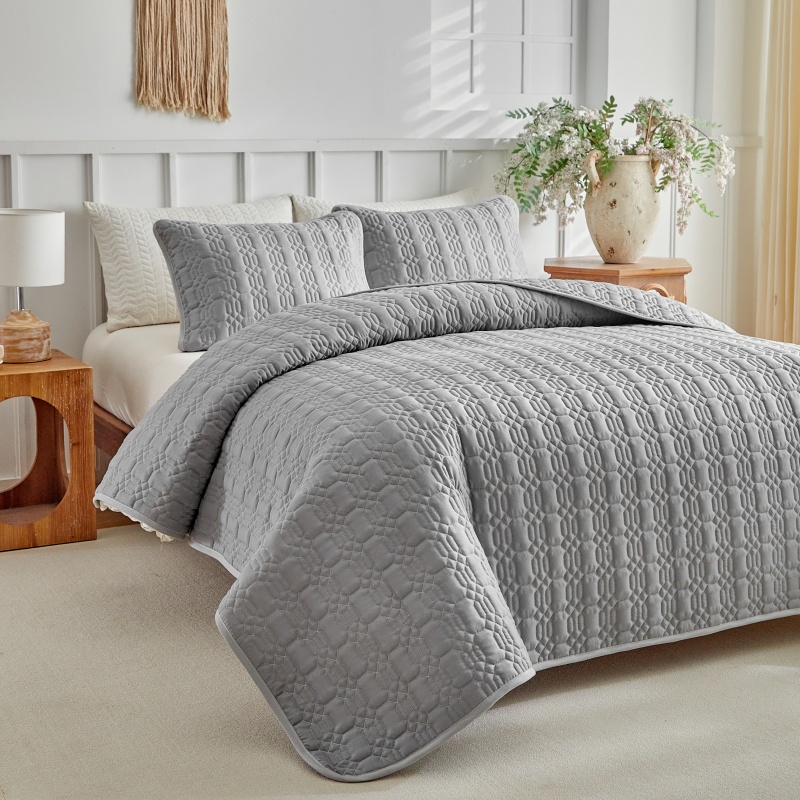 (总)温宁 2026年素色床盖三件套 国外薄被第一批--方糖 跨境,外贸,亚马逊,shein,temu,方糖-灰色,方糖-绿色,方糖-米色