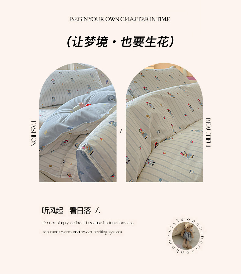 商品名称:优眠坊 2026春夏新款全棉印花四件套单品系列-单被套(预留缩水率) 少女日记-单被套